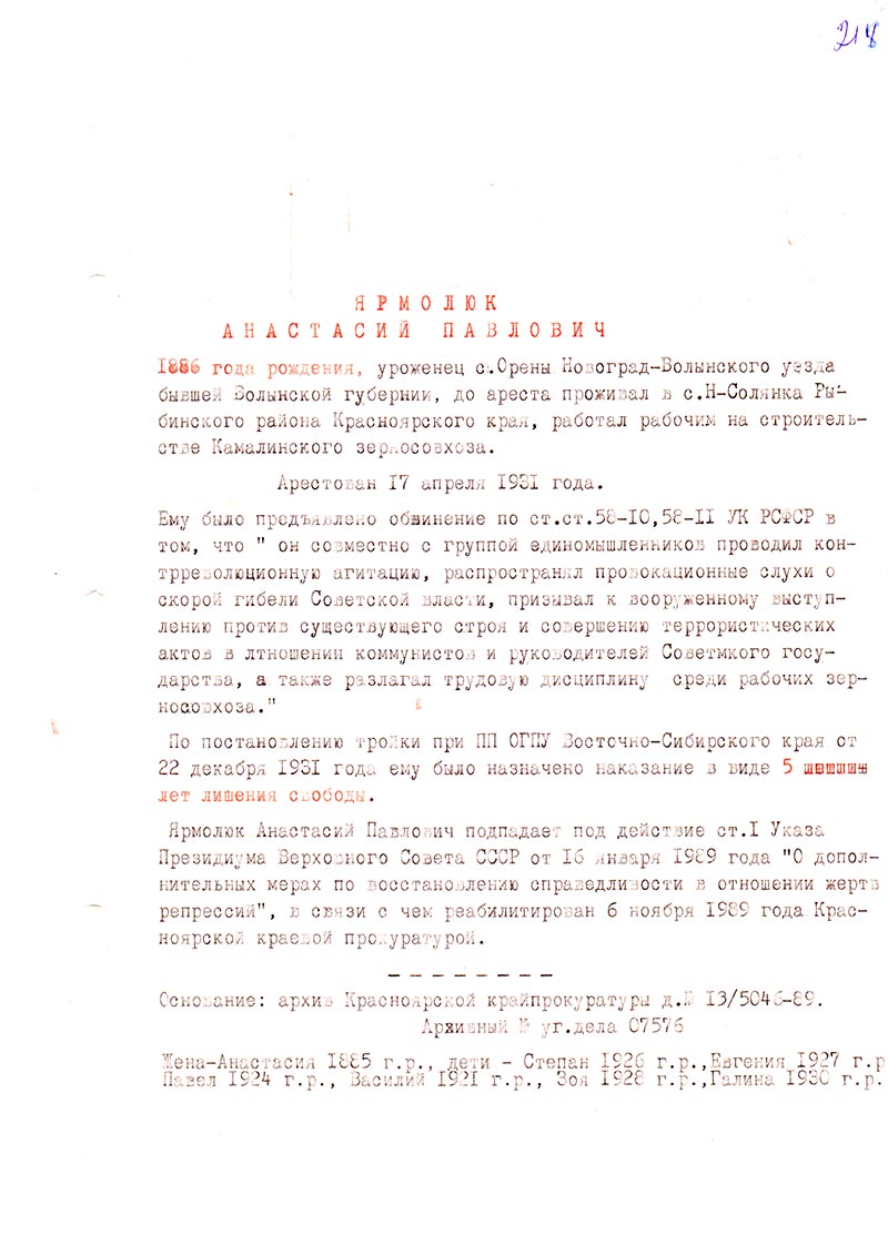 Основание: архив Красноярской крайпрокуратуры д. № 13/5046-89.