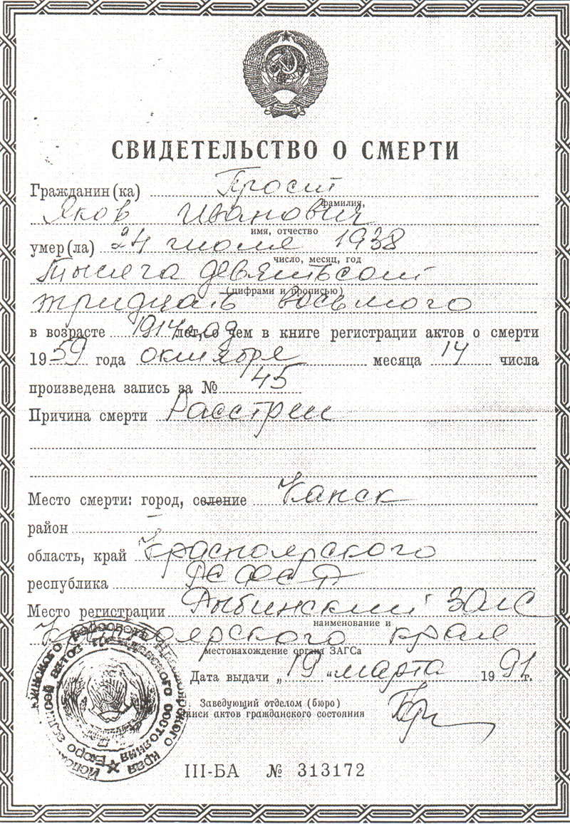 Место смерти: город Канск, край Красноярский, республика РСФСР.