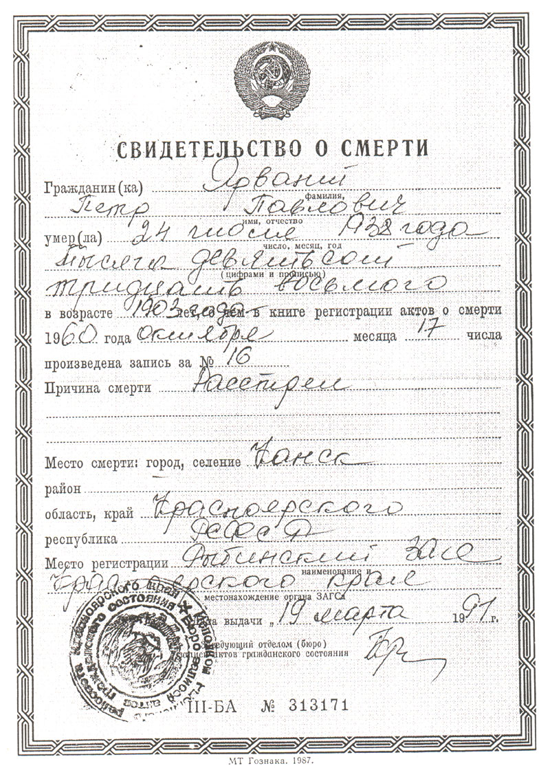 восьмого в возрасте 1903 года, о чем в книге регистрации актов о смерти 1960