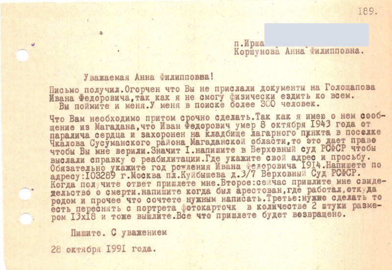 20.12.1992 года № 8/Б-165, ответа управления КГБ СССР по Красноярскому краю от