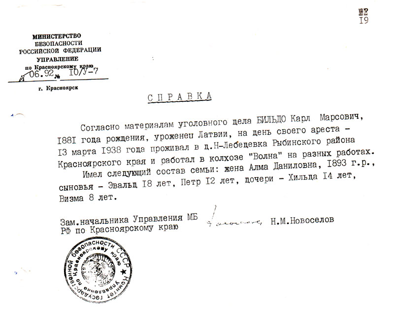 Основание: ответ МБ РФ по Красноярскому краю от 15.06.1992 года № 10/У-7.