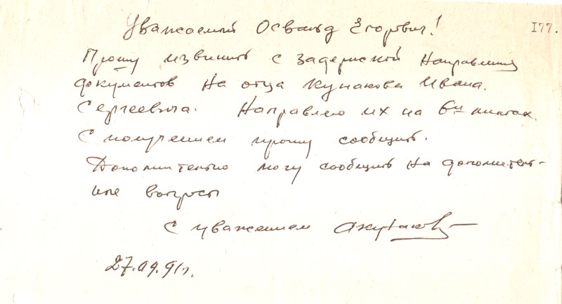 Прошу извинить с задержкой направления документов на отца Кунакова Ивана