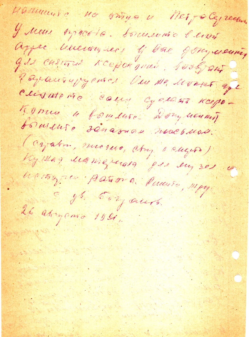Напишите на отца и Петра Сергеевича. У меня просьба. Вышлите в мой адрес