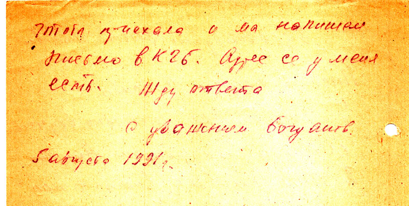 приехала и мы напишем письмо в КГБ. Адрес ее у меня есть. Жду ответа.