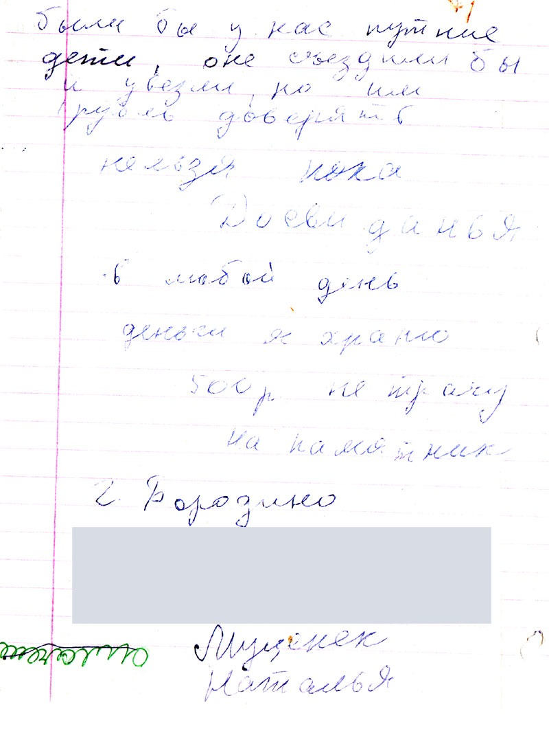 Тут есть моя мама и брат Саша. Я тогда вышлю деньги. Пока.