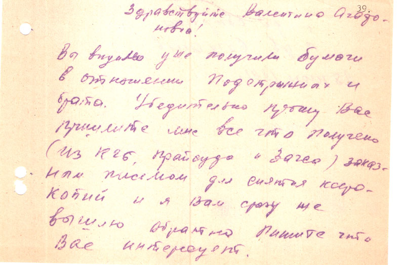 Вас пришлите мне все что получено (из КГБ, крайсуда, и Загса) заказным письмом
