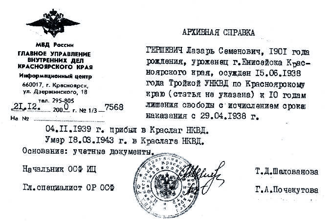 Гершевич Лазарь Семенович. Документы
