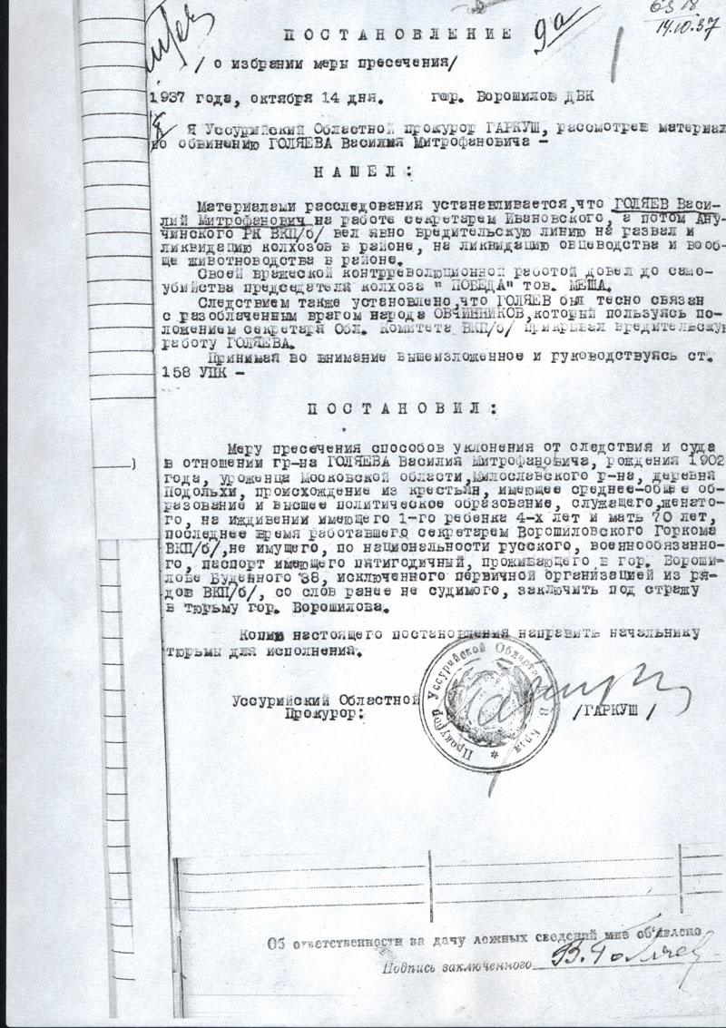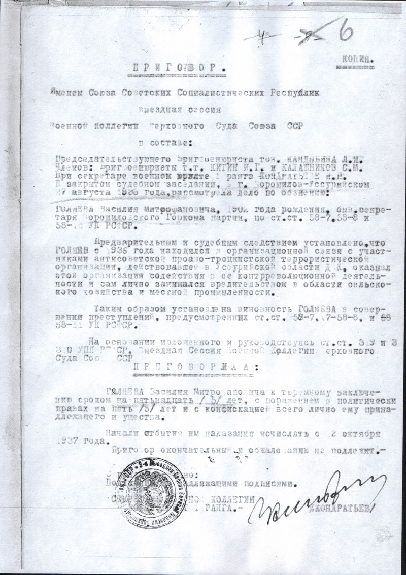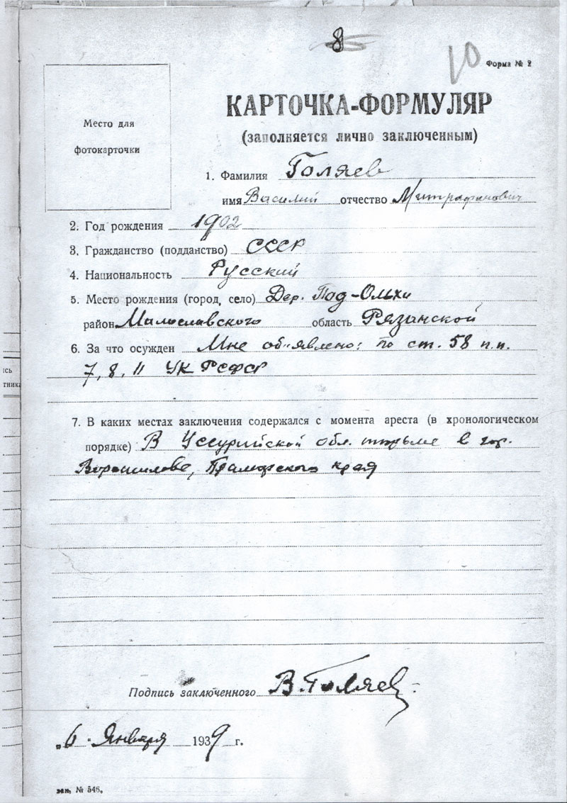 Голяев Василий Митрофанович. Документы