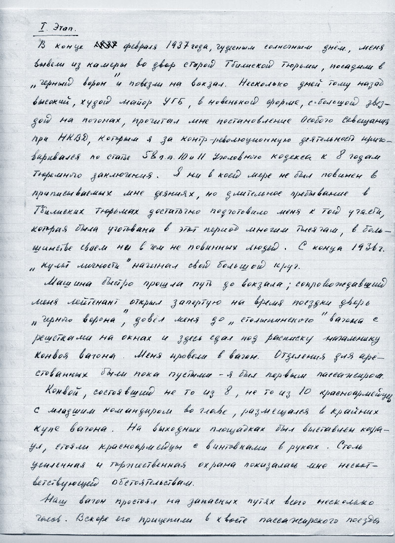 Ответ: Повторяю, что не состоял. Я лиш[ь] в течение нескольких недель в 1928 году встречался с троцкистом инженером Арнольдом Гординым, который меня познакомил с напечатанной нелегальной троцкистской платформой и который обрабатывал меня в троцкистском духе. Увлечение личностью Троцкого (его ораторским талантом) и привело меня к общению с Гординым и. следовательно, в его лице с троцкистской организацией.