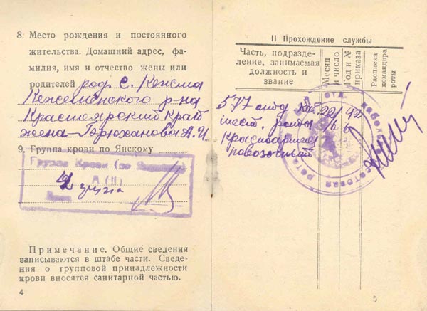 Паспорт: сдан в Кежемский райвоенкомат Красноярского края 31 мая 1942 года