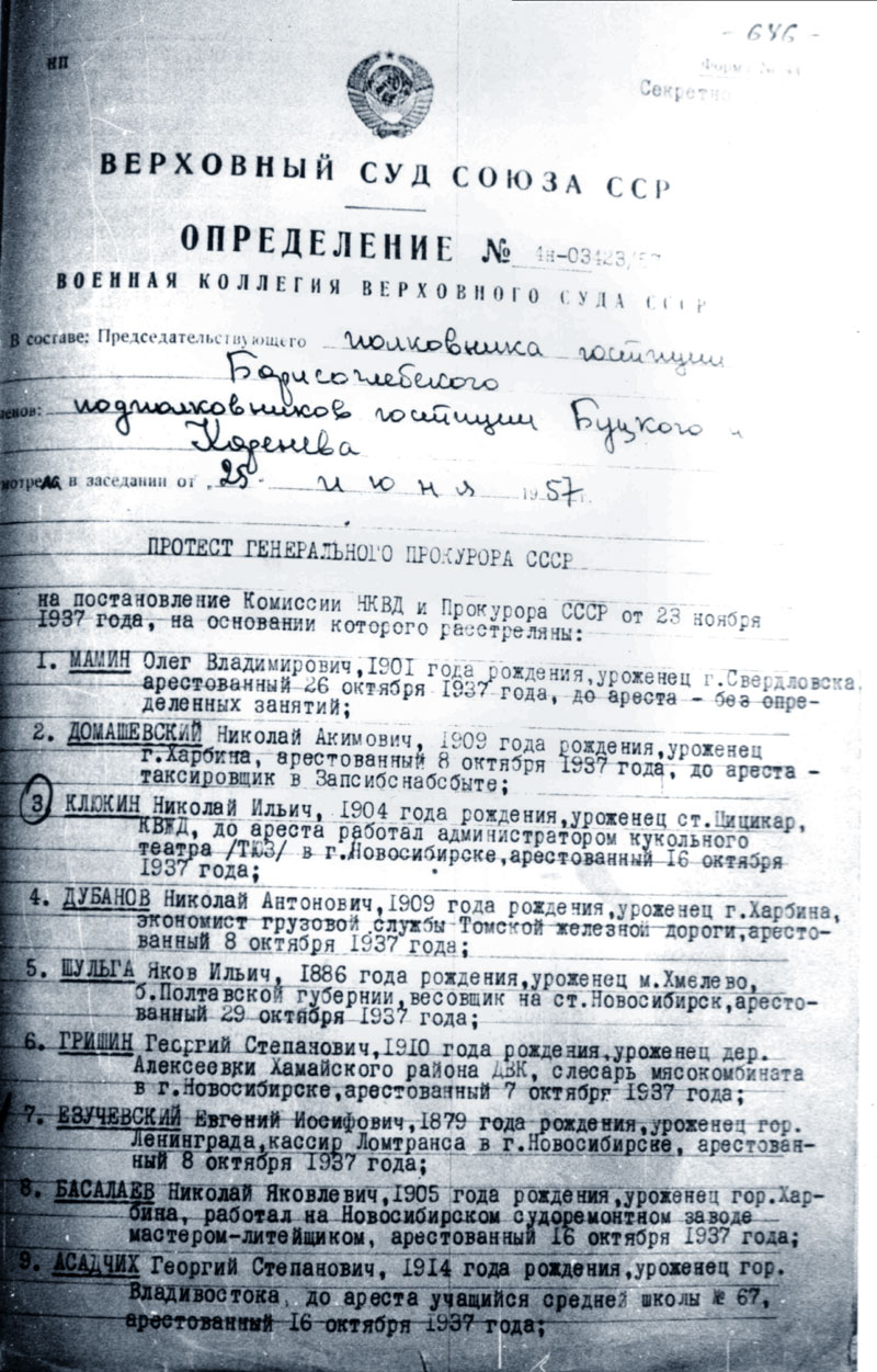 Клюкин Николай Ильич. Архивно-следственное дело