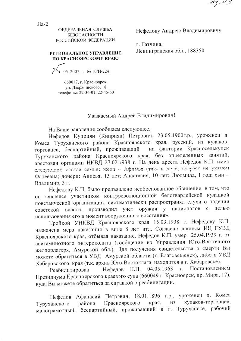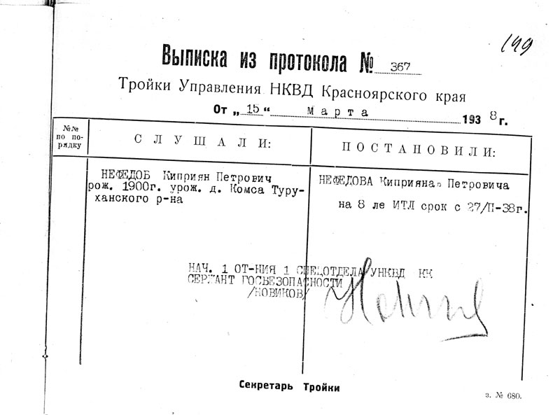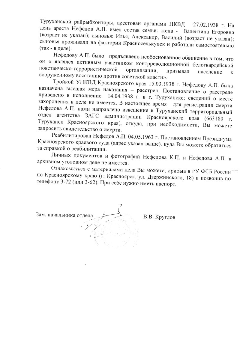 Нефедовы Афанасий Петрович, Даниил Петрович, Куприян Петрович