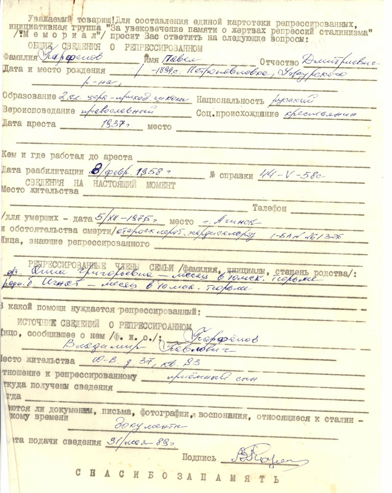 Архив Ачинского «Мемориала». Муниципальное бюджетное учреждение культуры «Ачинский краеведческий музей имени Д.С.Каргополова»