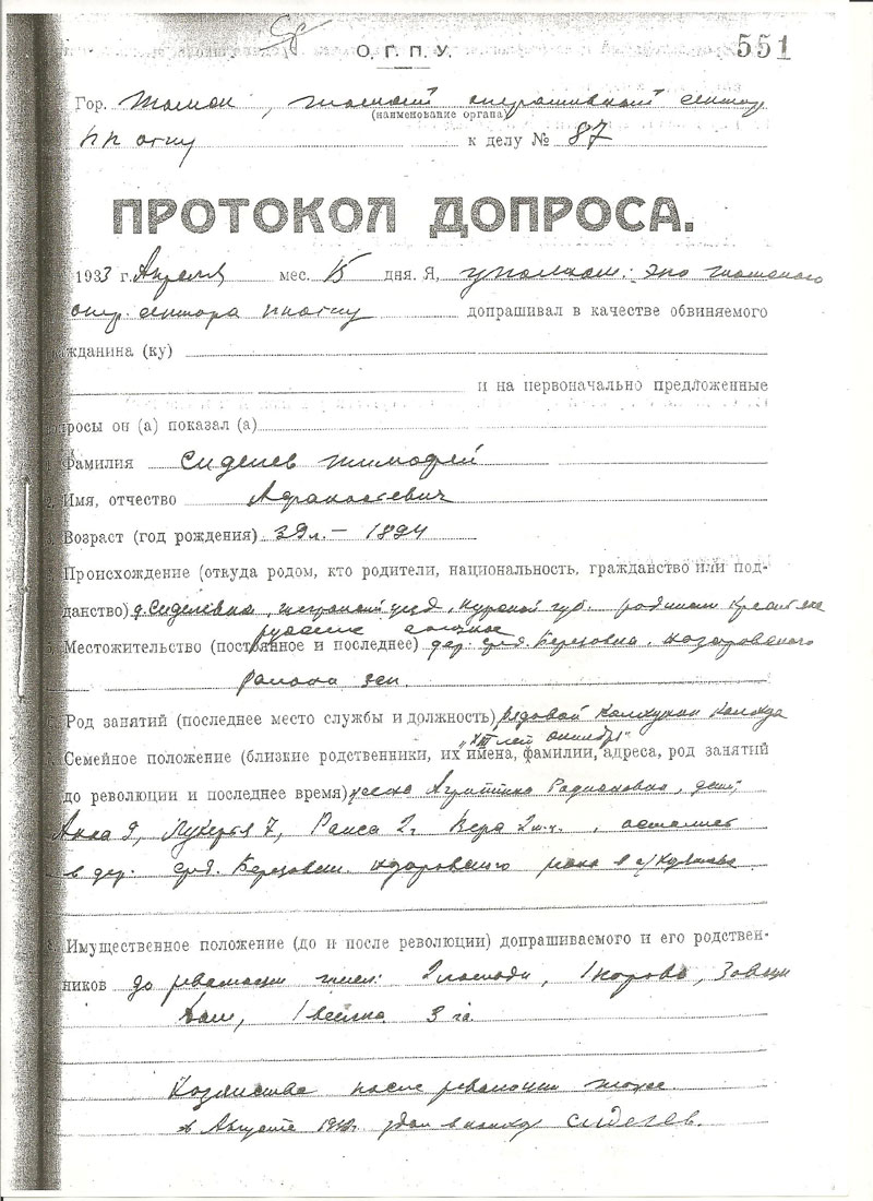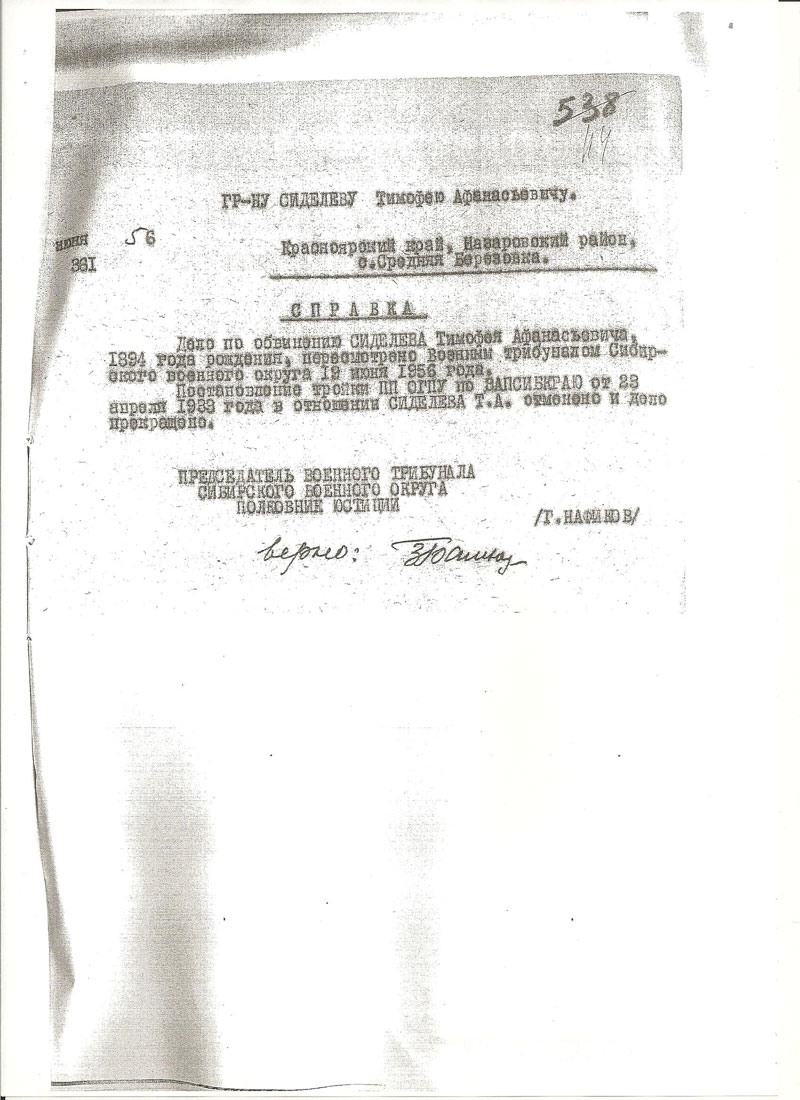 Сиделев Тимофей Афанасьевич. Документы