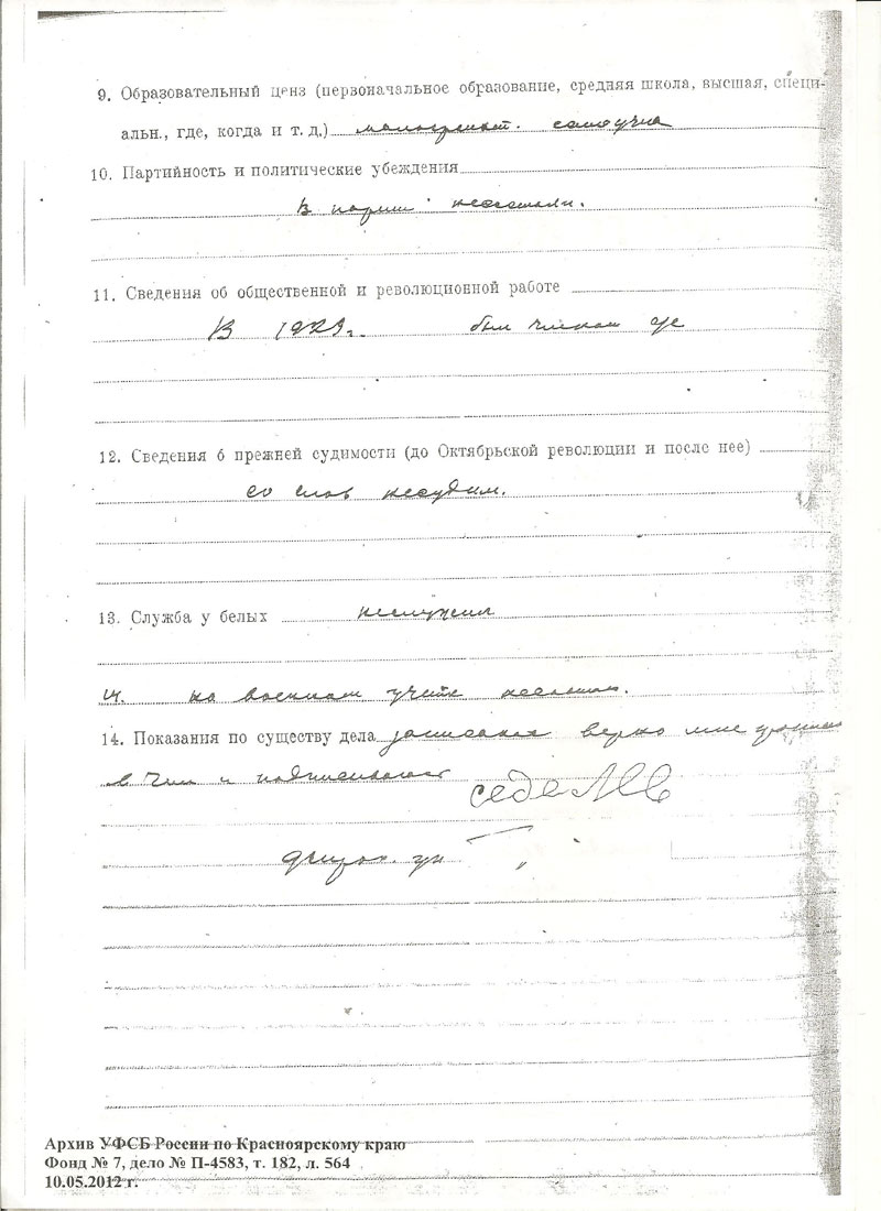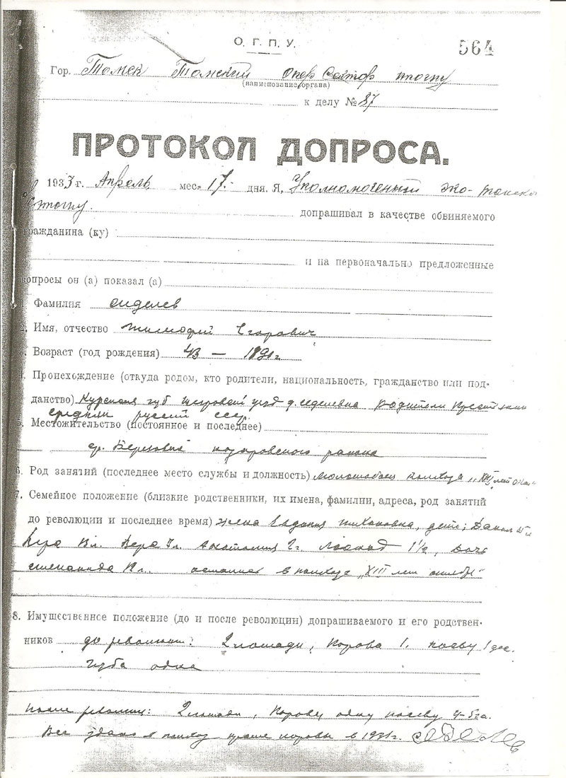 Сиделев Тимофей Егорович. Документы