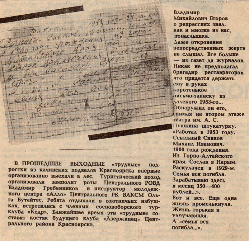 Вырезка низ неизвестного издания и с неизвестной датой. Но мы нашли этого Сивкова