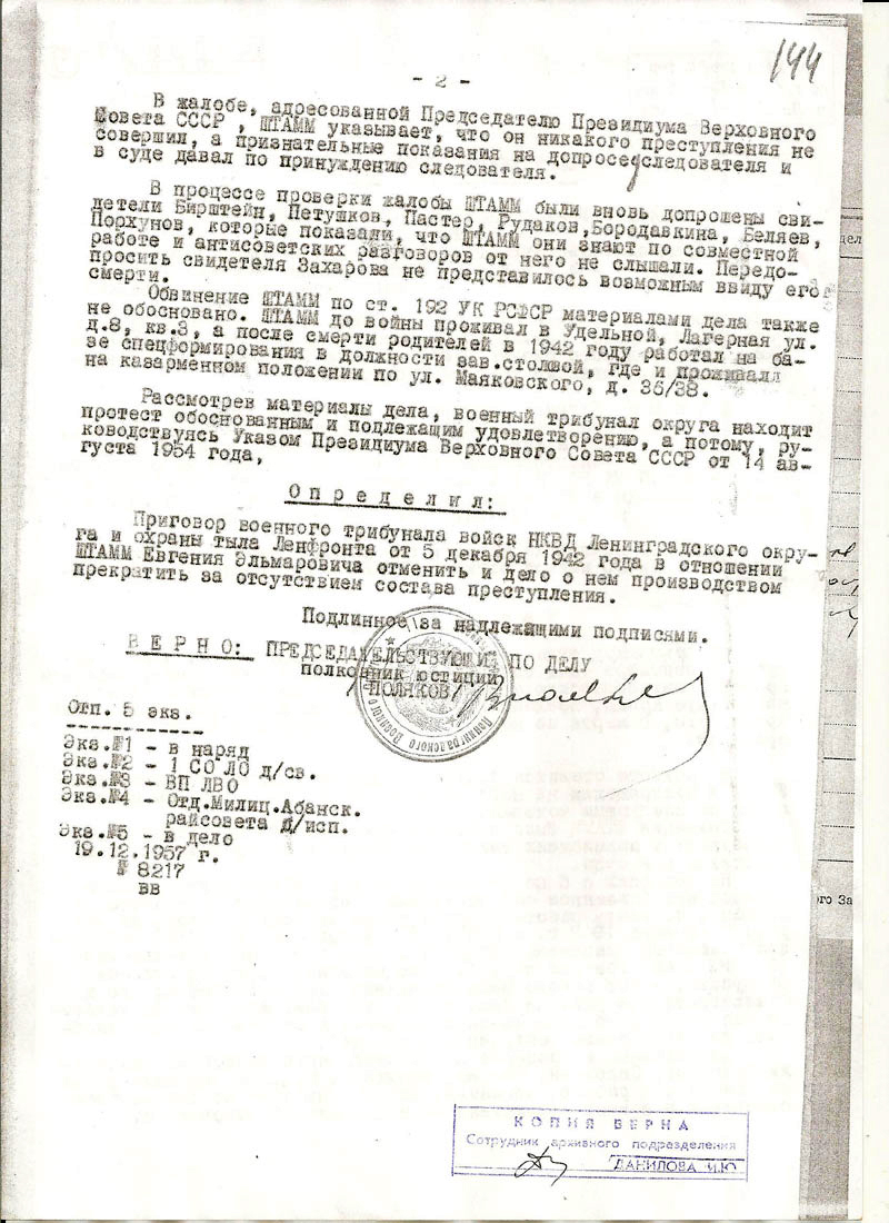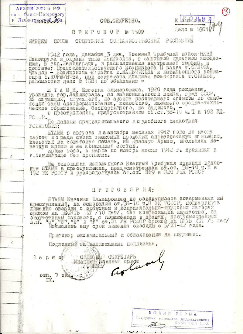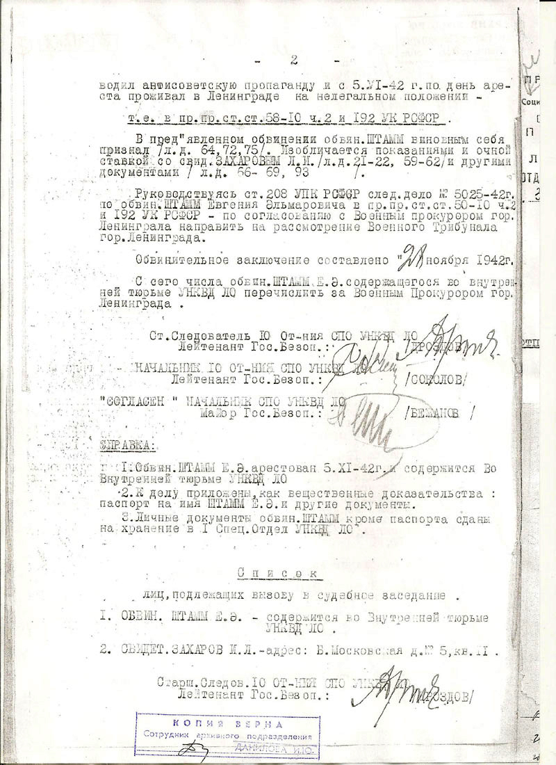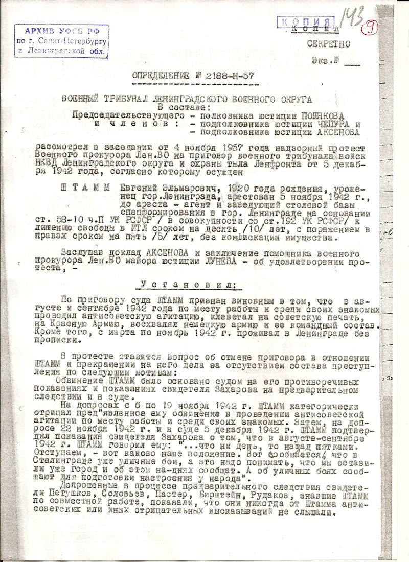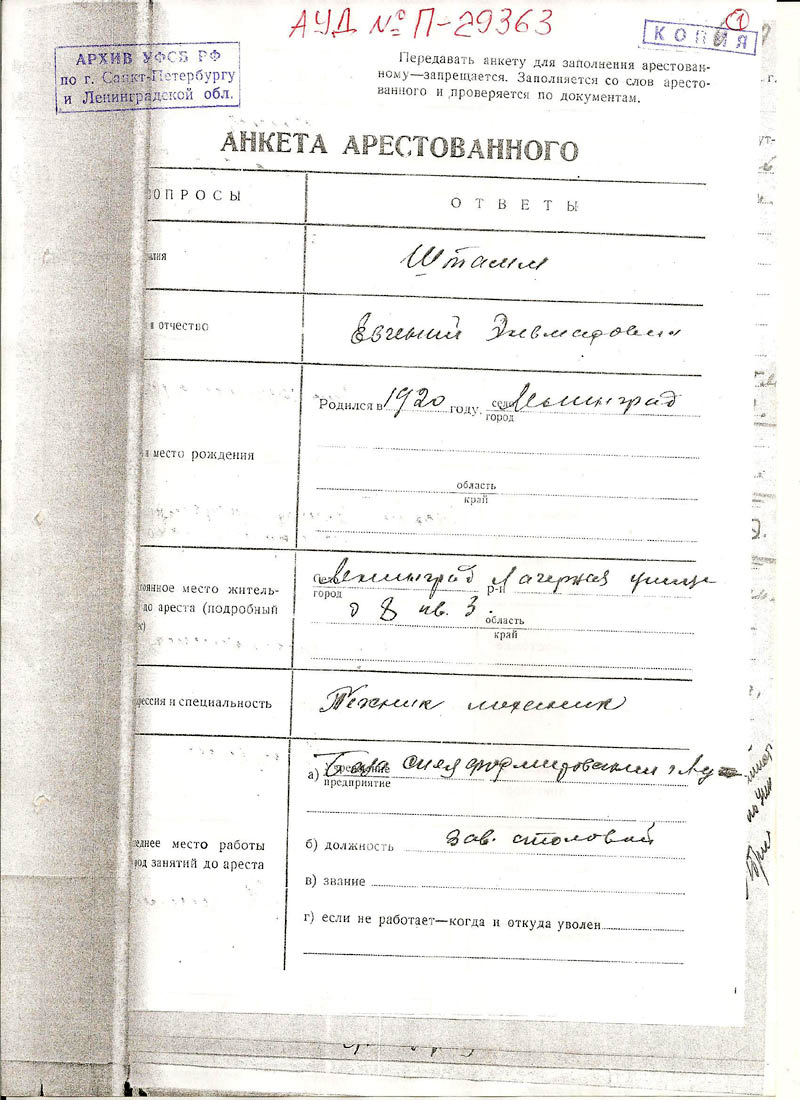 Штамм Евгений Эльмарович. Документы