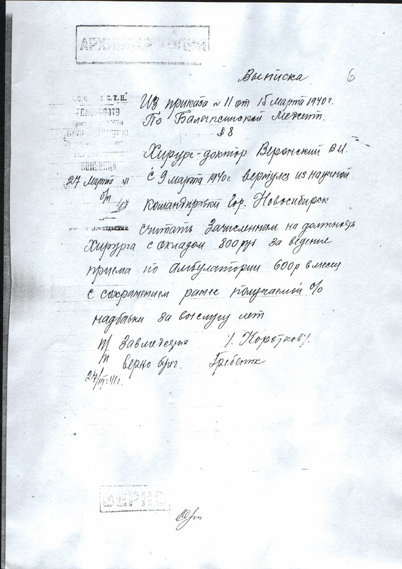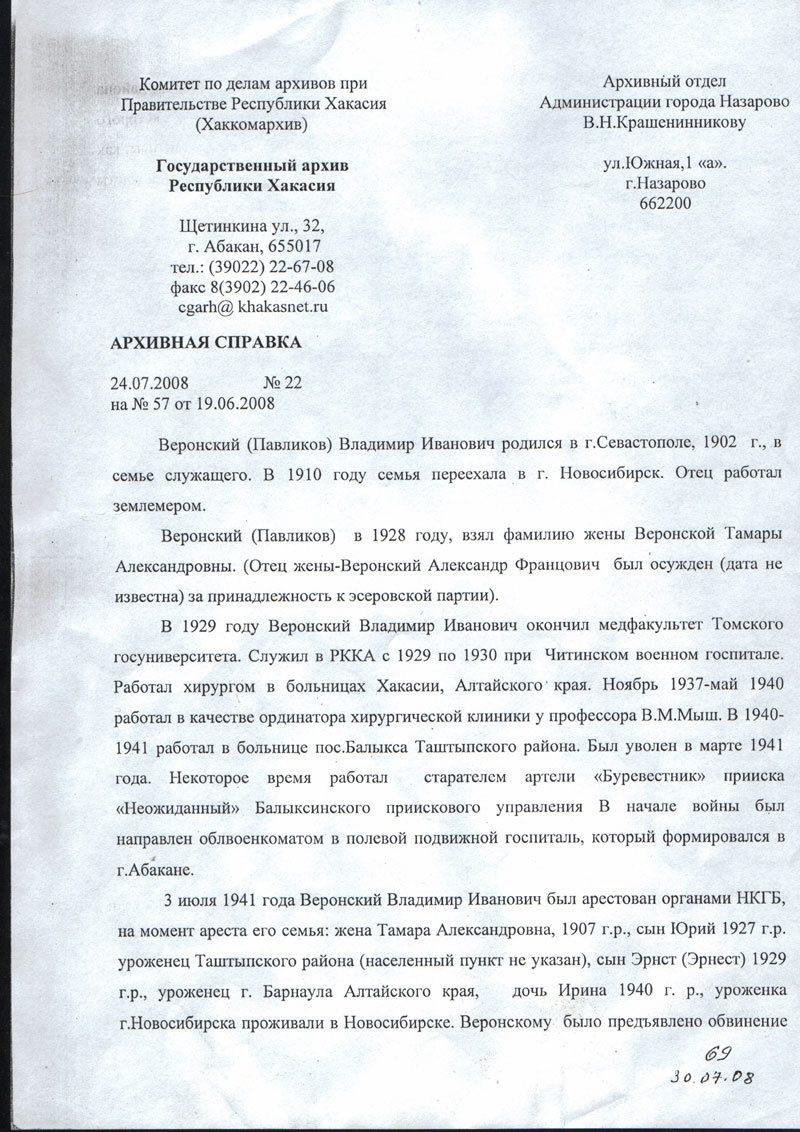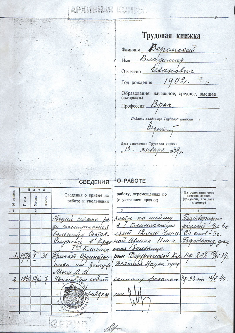 Веронский Владимир Иванович. Документы