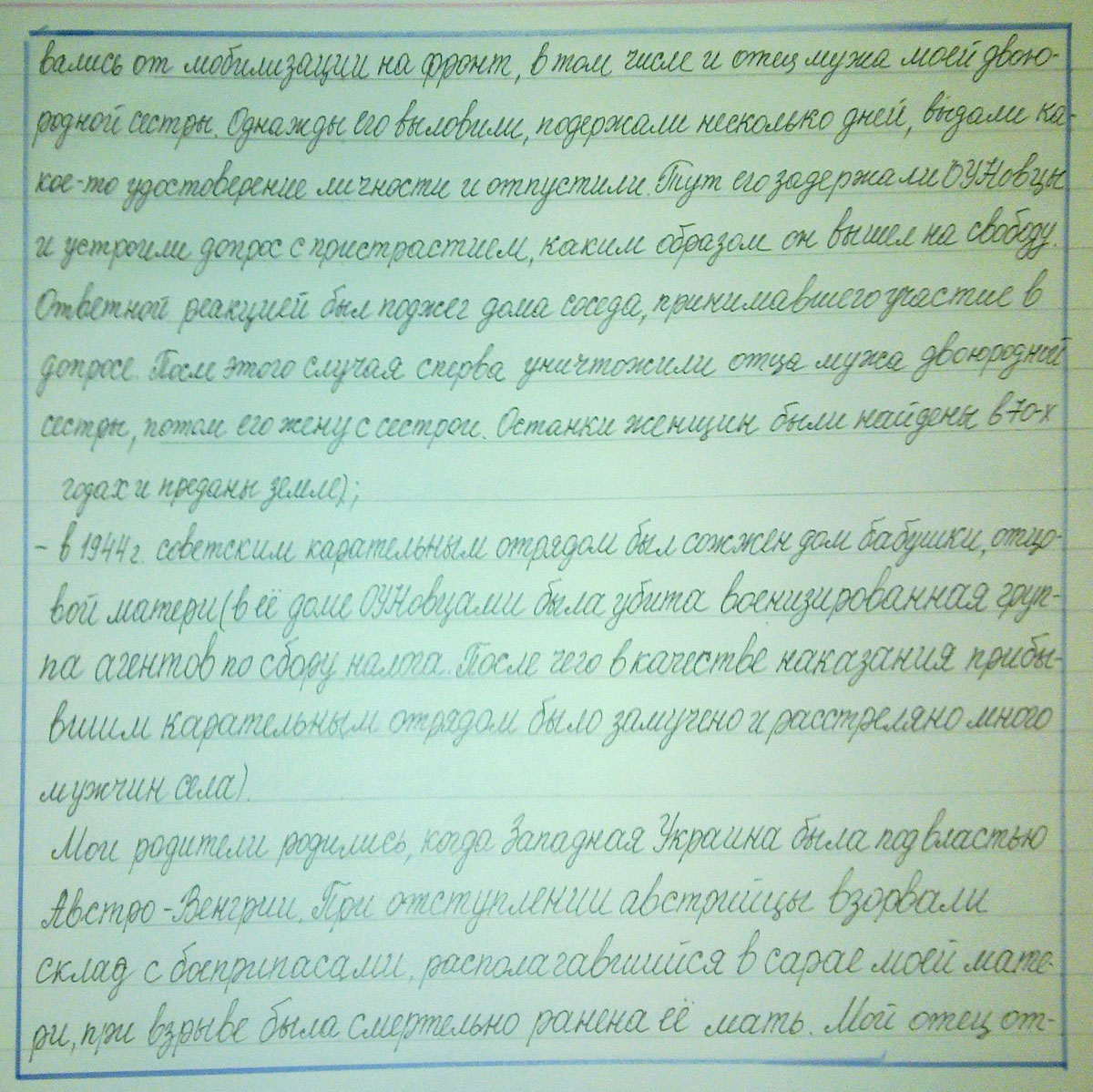 - в 1944 погибли от рук ОУНовцев родители мужа моей двоюродной сестры (с