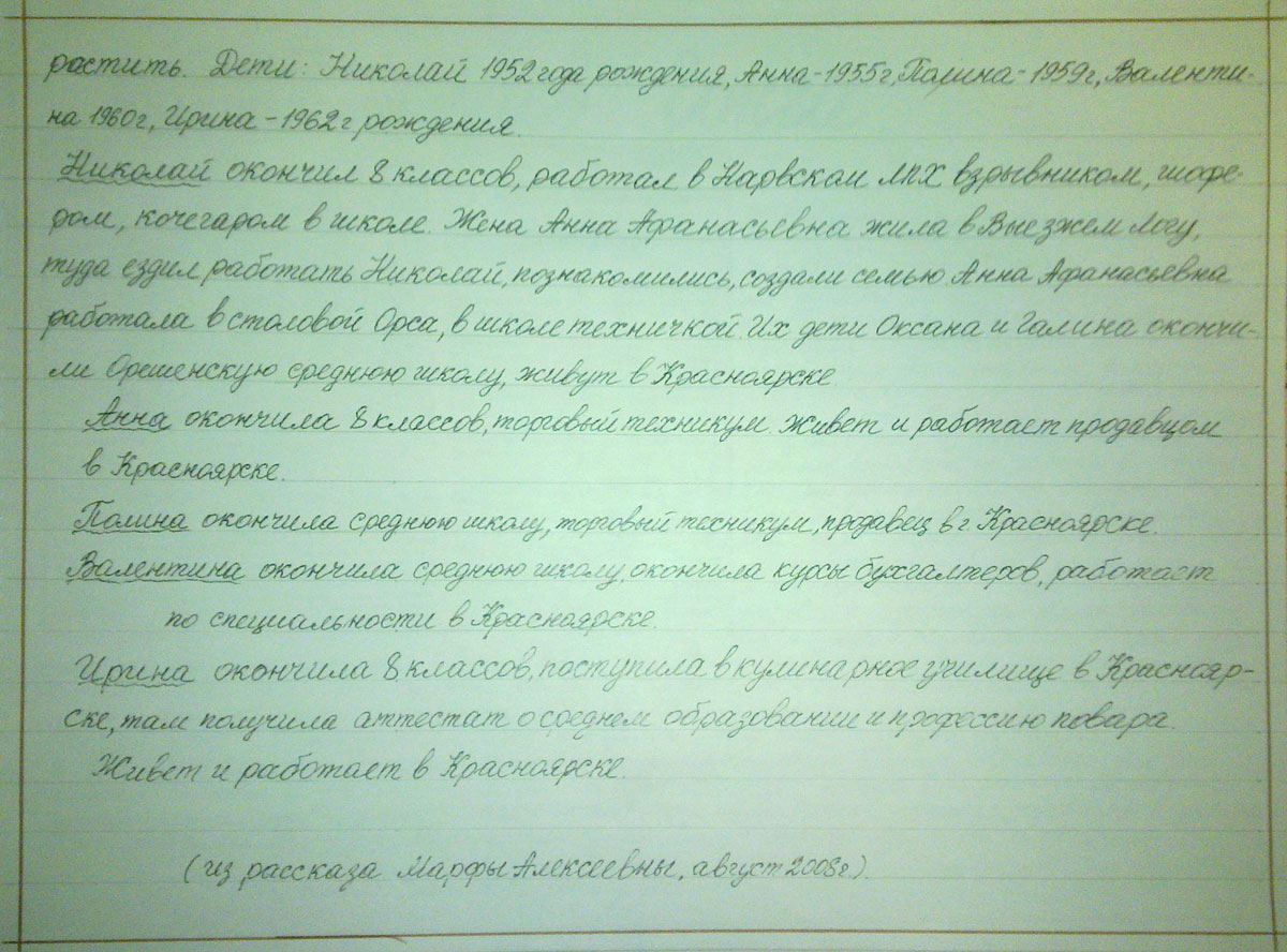 Дети: Николай 1952 года рождения, Анна – 1955 г., Полина – 1959 г., Валентина 1960г., Ирина – 1962 г. рождения.