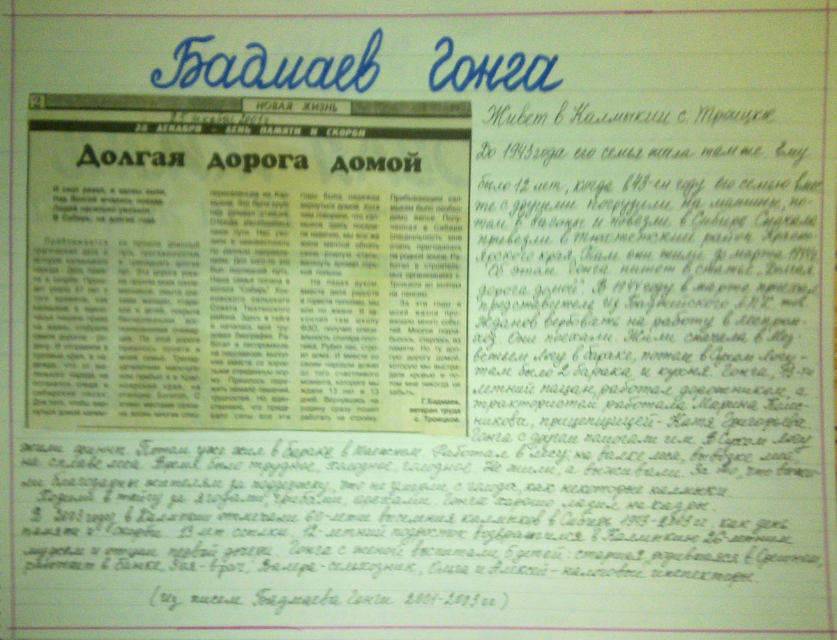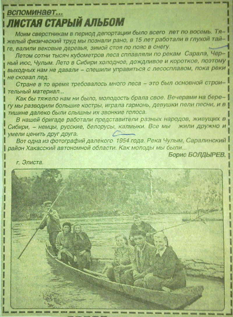 Приближается трагическая дата в истории калмыцкого народа – День памяти и скорби. Проходит ровно 57 лет с того времени, как калмыков в единочасье лишили права на жизнь, Отобрали самое дорогое – родину. И отправили в суровые края, в надежде, что от маленького народа не останется следа в сибирских лесах. Для того, чтобы вернуться домой калмыки прошли длинный путь, протяженностью в тринадцать долгих лет. Эта дорога усеяна прахом моих соплеменников, омыта слезами женщин, стариков и детей, покрыта бесчисленными воспоминаниями очевидцев. По этой дороге пришлось пройти и моей семье. Тринадцатилетним мальчуганом я прибыл в Красноярский край, на станцию Боготол. С этими местами связана жизнь многих спецпереселенуев из Калмыкии. Это была крупная узловая станция. Отсюда расходились наши пути. Нас увозили в неизвестность по разным напралениям. Для кого-то это был последний путь. Наша семья попала в колхоз «Сибирь» Хохловского сельского Совета Тюхтенского района. Здесь в тайге и началась моя трудовая биография. Работал в леспромхозе, на лесозаводе, выполняя вместе со взрослыми отведенную норму. Пришлось пережить немало лишений, трудностей. Но единственное, что придавало силы все эти годы была надежда вернуться домой. Хотя нам говорили, что калмыков здесь поселили навечно, мы все же жили мечтой обнять свою родную степь, вдохнуть аромат горькой полыни.