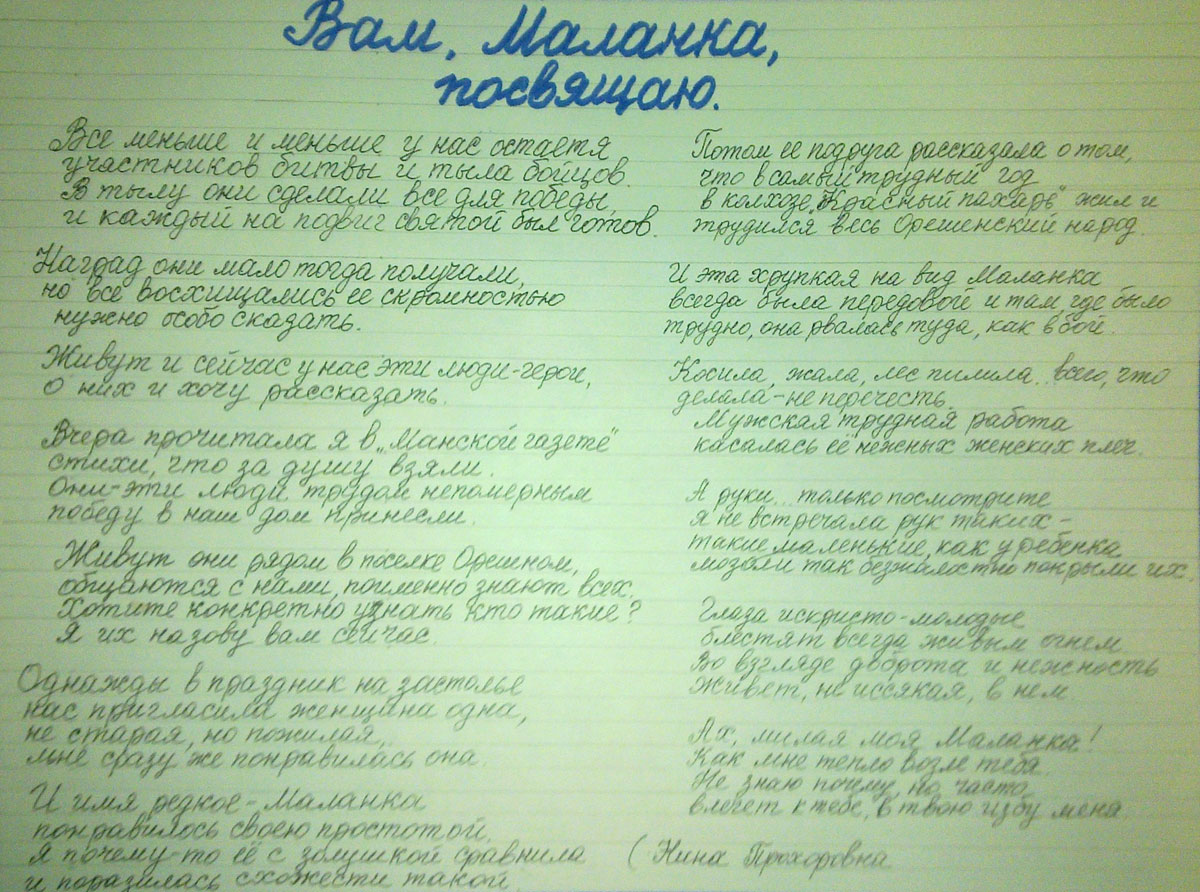 Три брата погибли на фронте. Сестра Люба тоже умерла. Маланья Фоковна и большой семьи осталась одна.