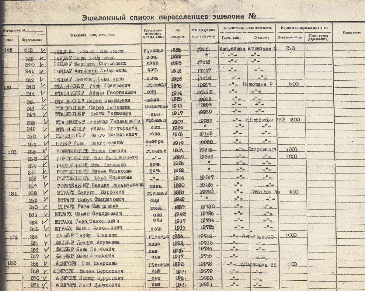 ГОРШТЕНБЛИТ Шия Зельманович. Род. в 1887. Поляк. Состав семьи: жена Шандия Шкельмаковна 1890 г.р., дети Ита 1936 г.р., Ривка 1932 г.р., Хава 1924 г.р. Находились в ссылке в Минусинске, репатриированы в Польшу в 1946 г.