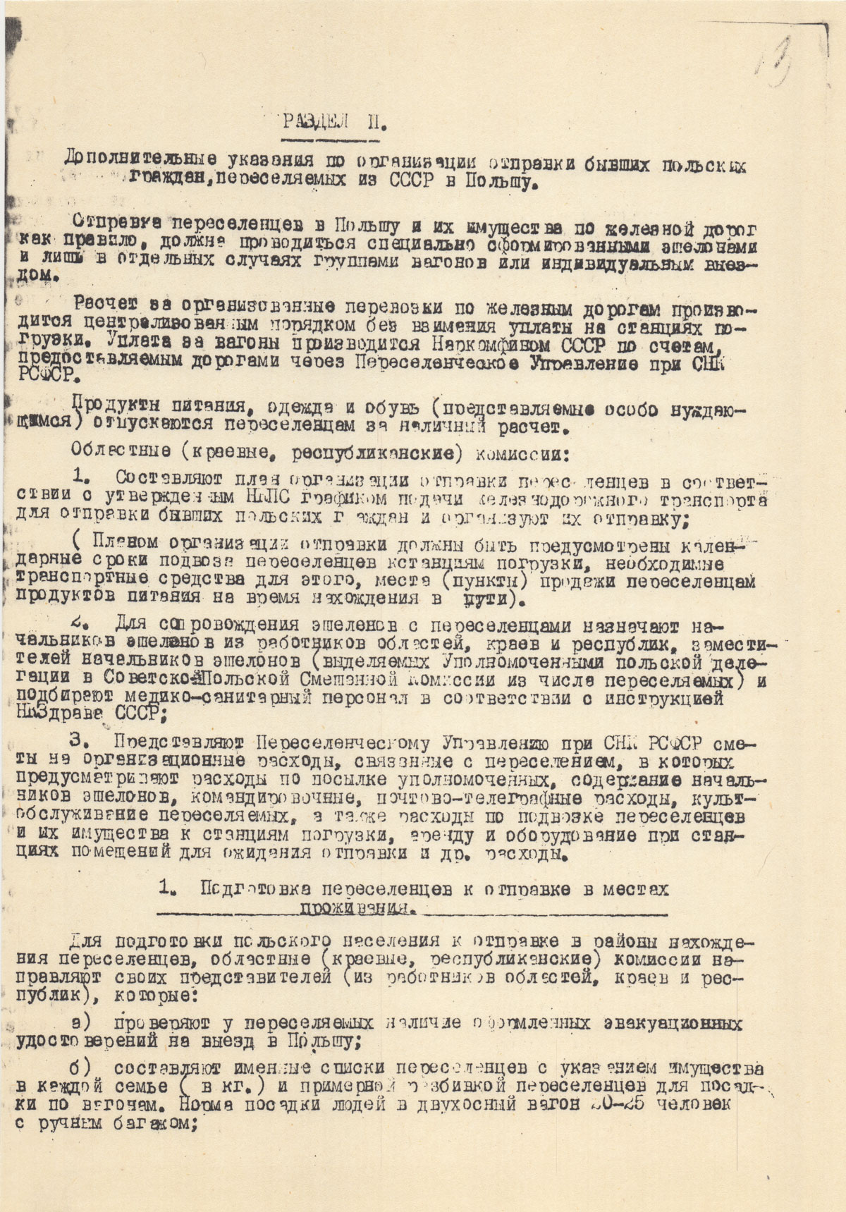 Отправка переселенцев в Польшу и их имущества по железной дороге, как правило, должно проводиться специально сформированными эшелонами и лишь в отдельных случаях группами вагонов или индивидуальным выездом.