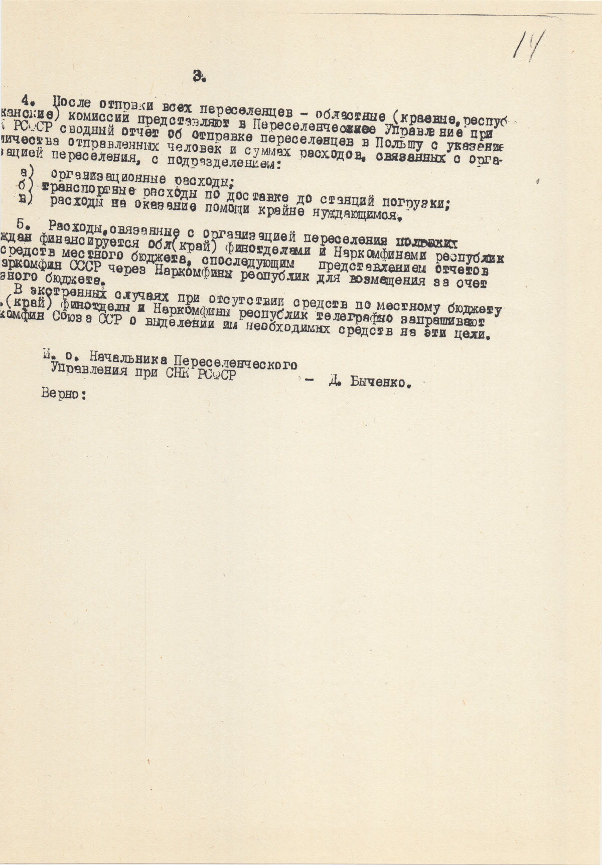 – областные (краевые, республиканские) комиссии представляют в Переселенческое Управление при НК РСФСР сводный отчет об отправке переселенцев в Польшу с указанием количества отправленных человек в суммах расходов, связанных с организацией переселения, с подразделением: