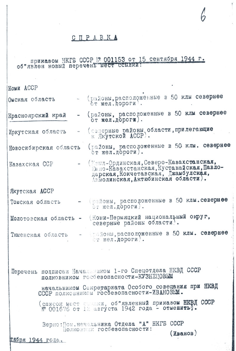 приказом НКГБ СССР N 001153 от 15 сентября 1944 г.
