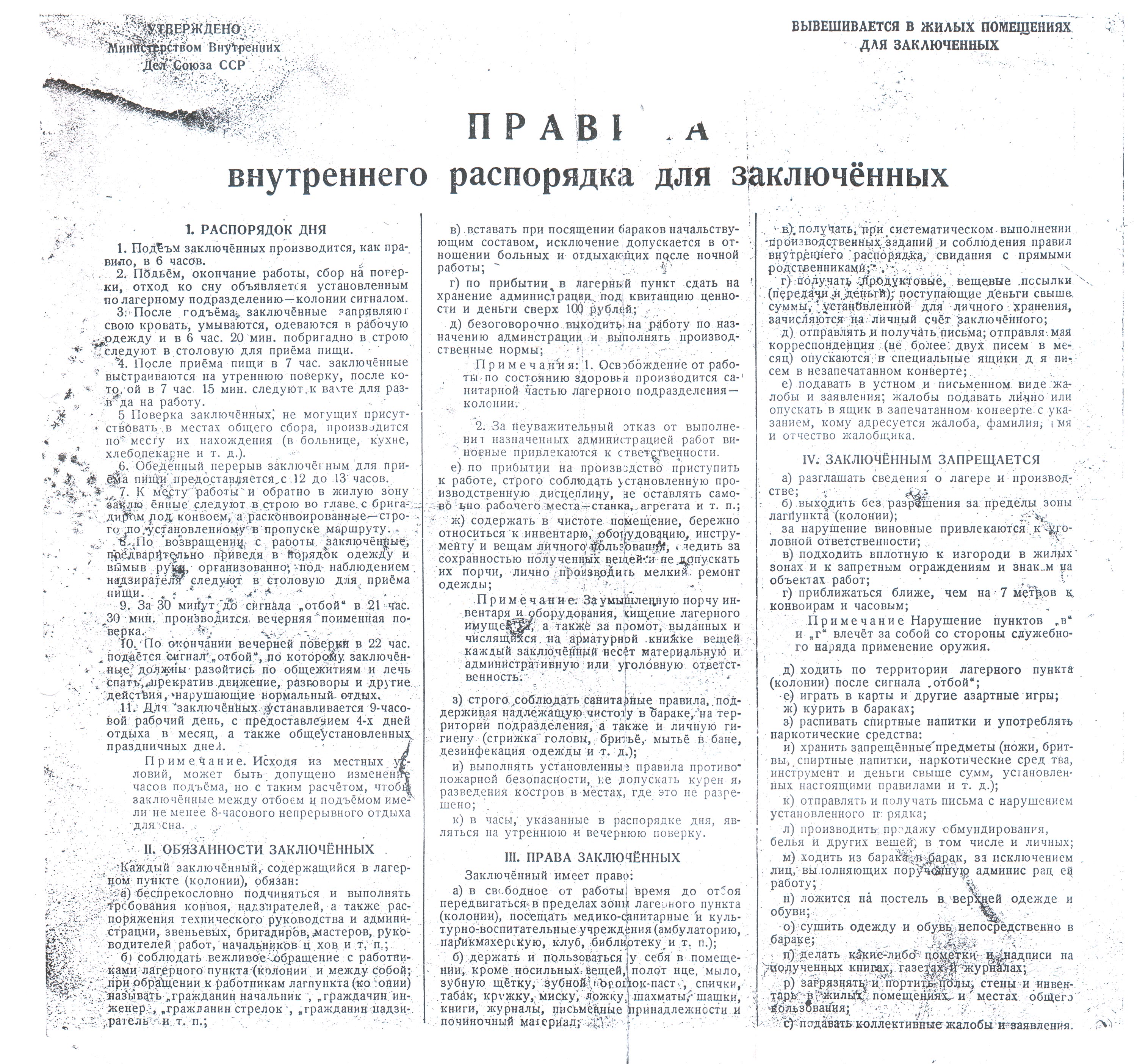 IV. ЗАКЛЮЧЁННЫМ ЗАПРЕЩАЕТСЯ