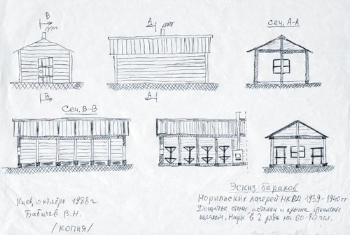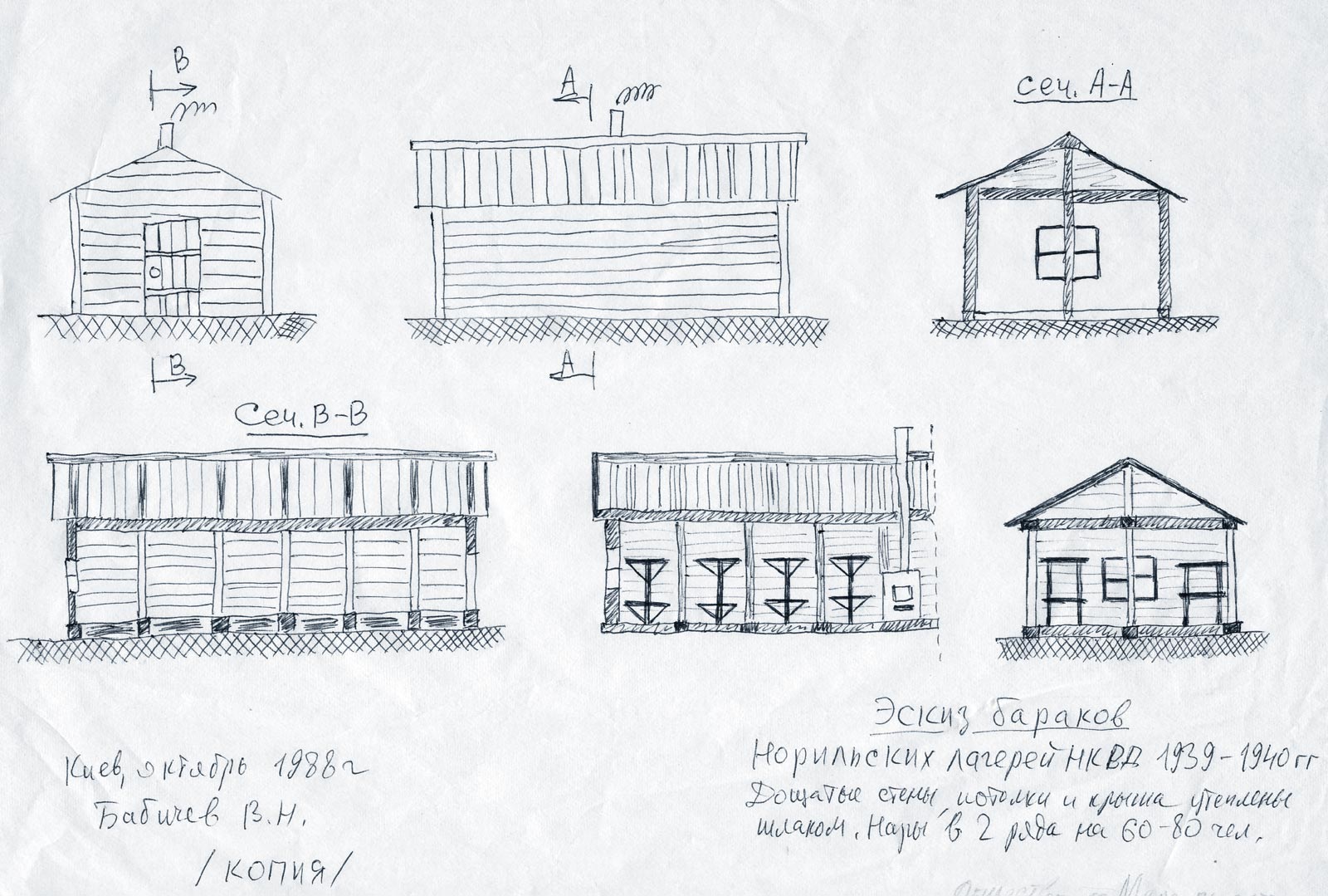 В.Н.Бабичев. Эскиз бараков Норильлага 1949-40гг.