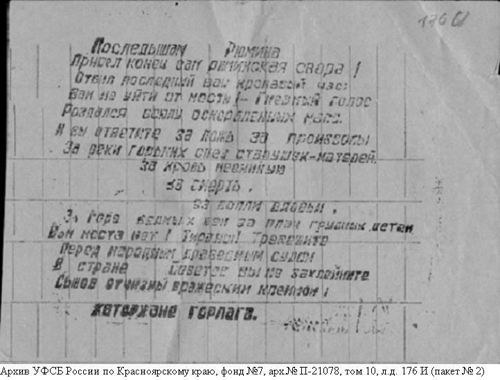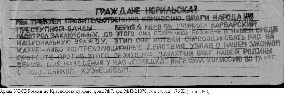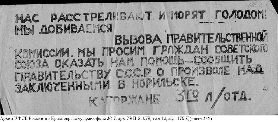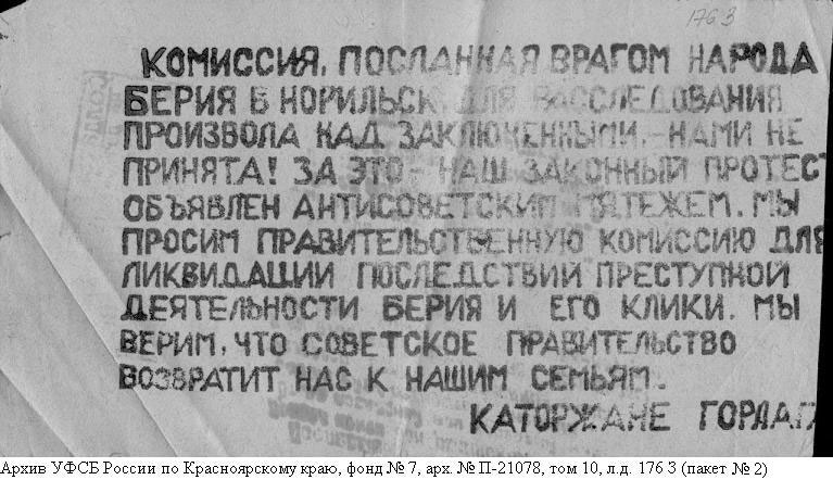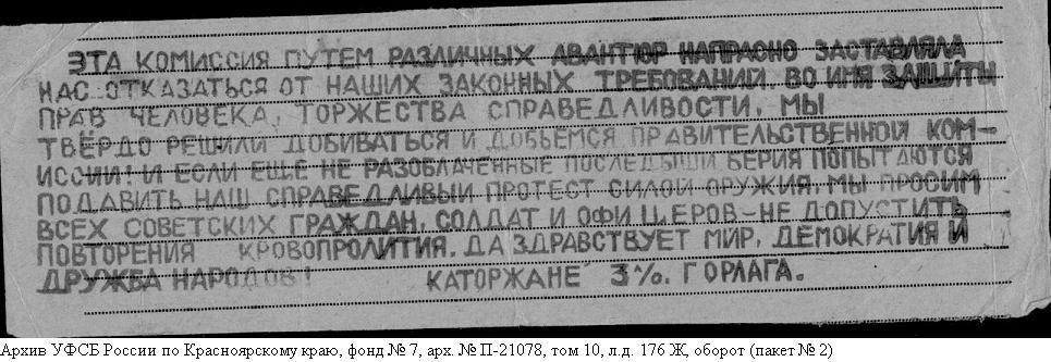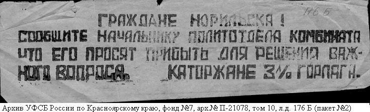 Норильское восстание. Фотографии из архивно-следственного дела Шамаева Бориса Александровича (Архив УФСБ России по Красноярскому краю фонд №7 арх.№ П-21078)
