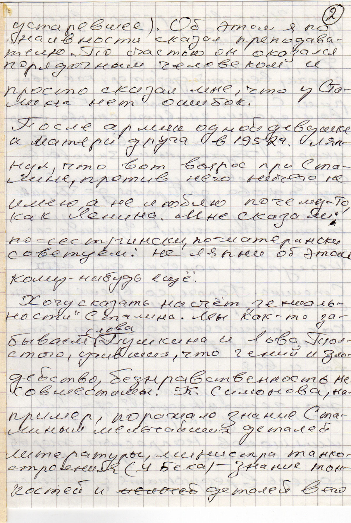 После армии одной девушке и матери друга в 1952 г. ляпнул, что вот возрос при Сталине, против него ничего не имею, а не люблю почему-то, как Ленина. Мне сказали: по-сестрински, по-матерински советуем: не ляпни об этом кому-нибудь ещё.