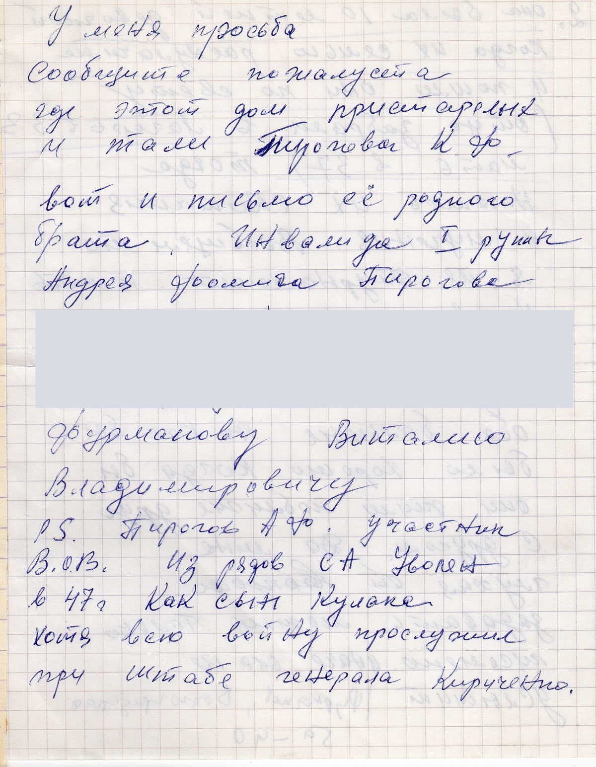 PS. Пирогов АФ. участник В.О.В. Из рядов СА Уволен в 47 г. как сын кулака