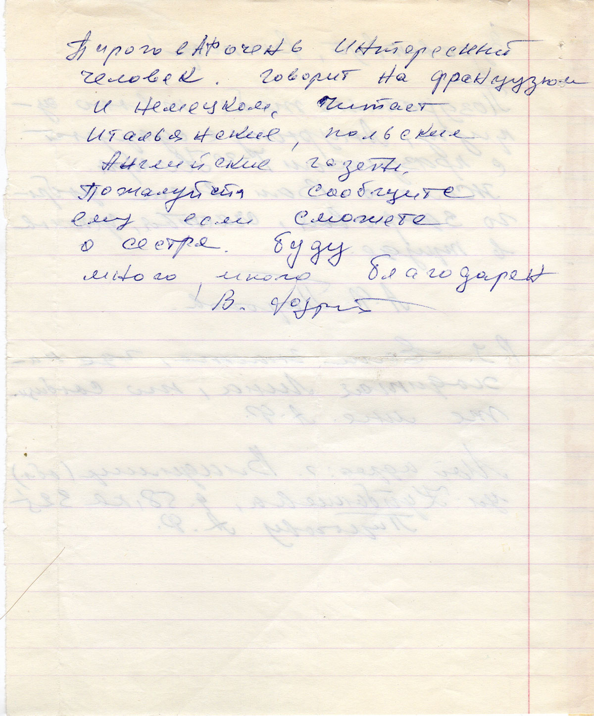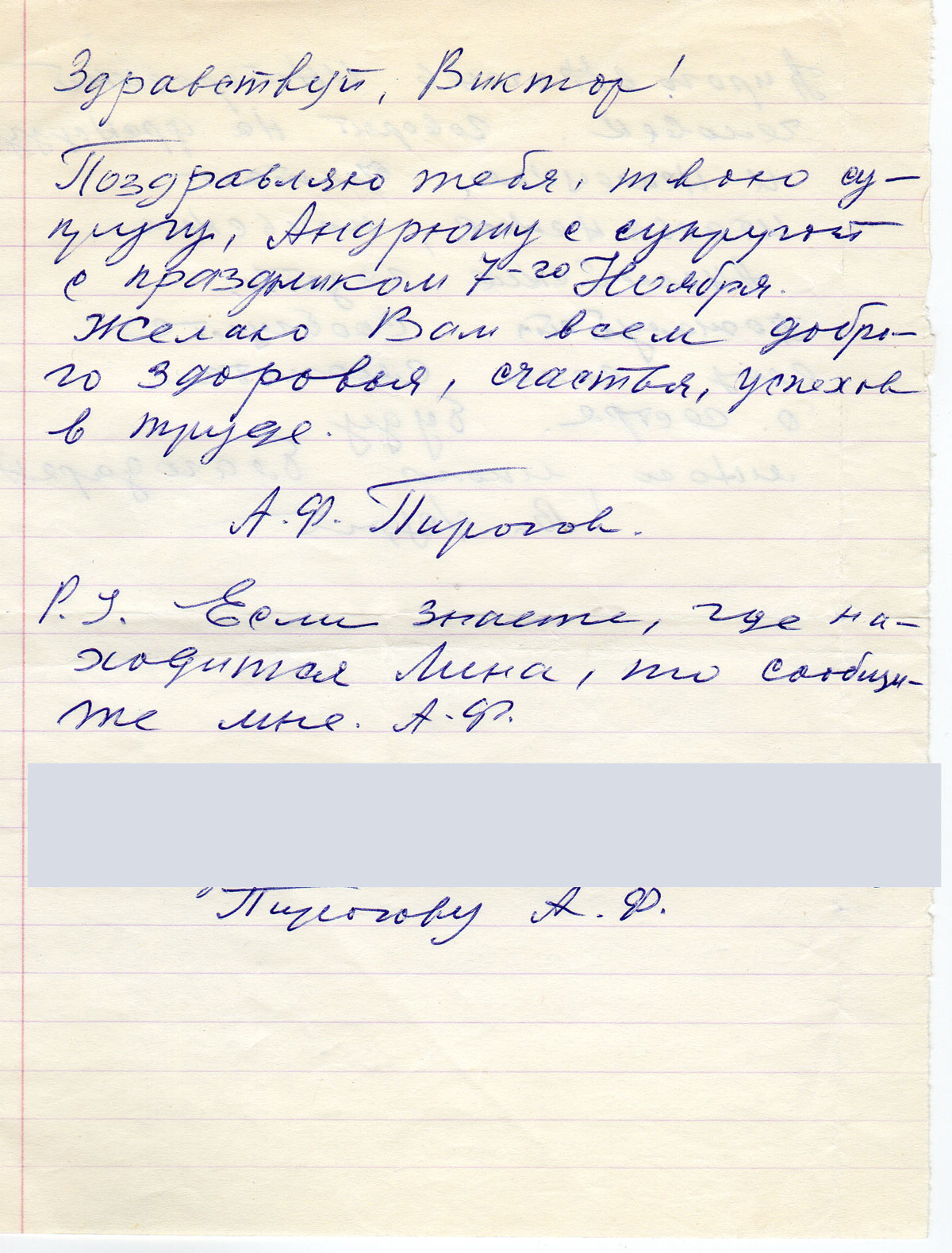 P.S. Если знаете, где находится Лина, то сообщите мне. А.Ф.