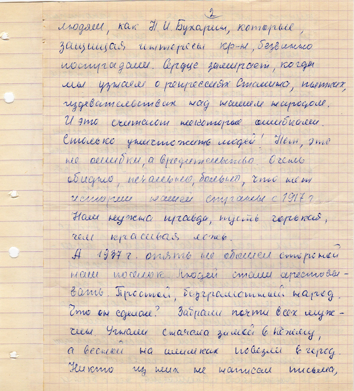 Столько уничтожить людей! Нет, это не ошибки, а вредительство. Очень обидно, печально, больно, что нет истории нашей страны с 1917 г. Нам нужна правда, пусть горькая, чем красивая ложь.