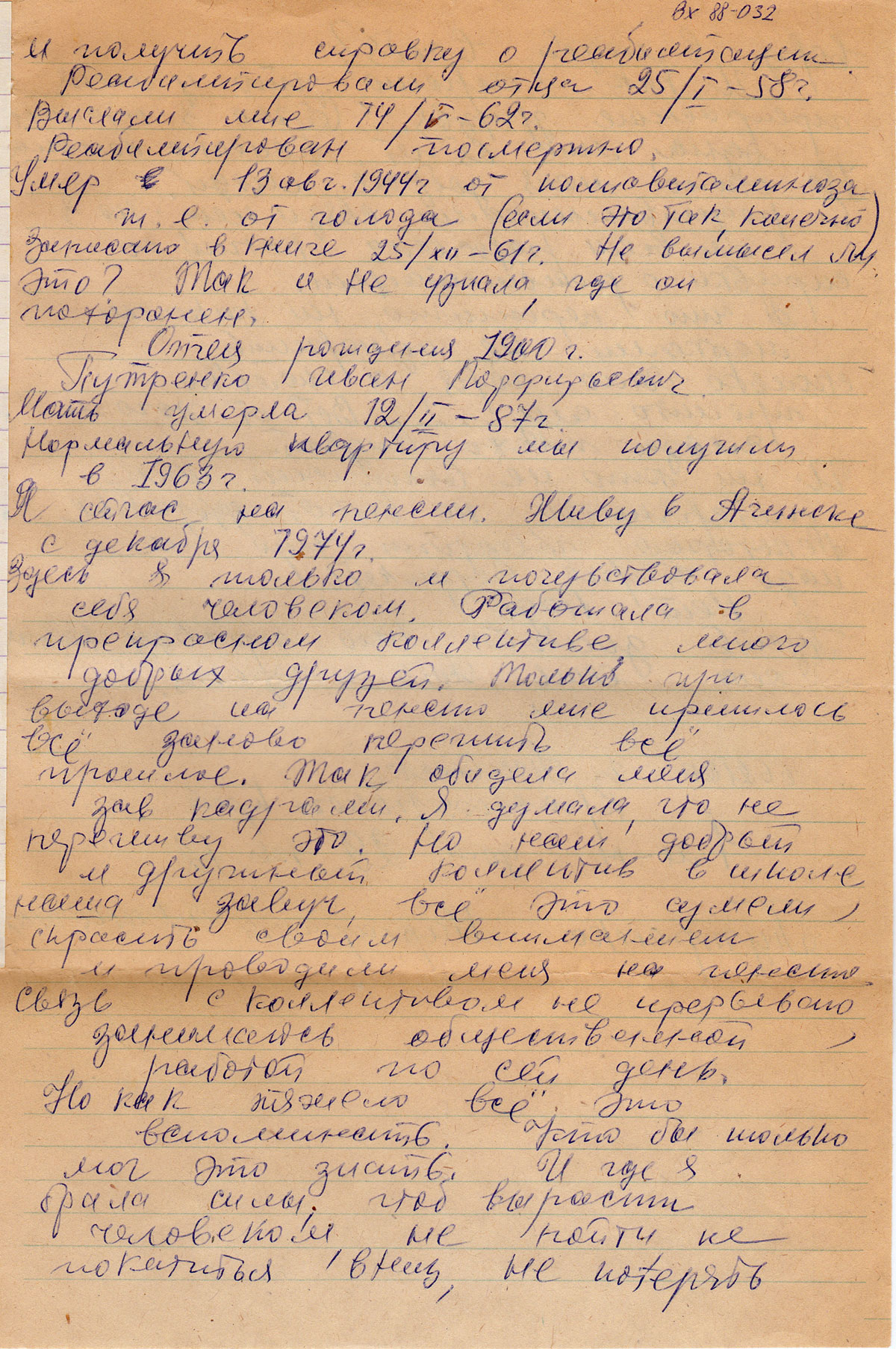 Мать умерла 12/II -87г.