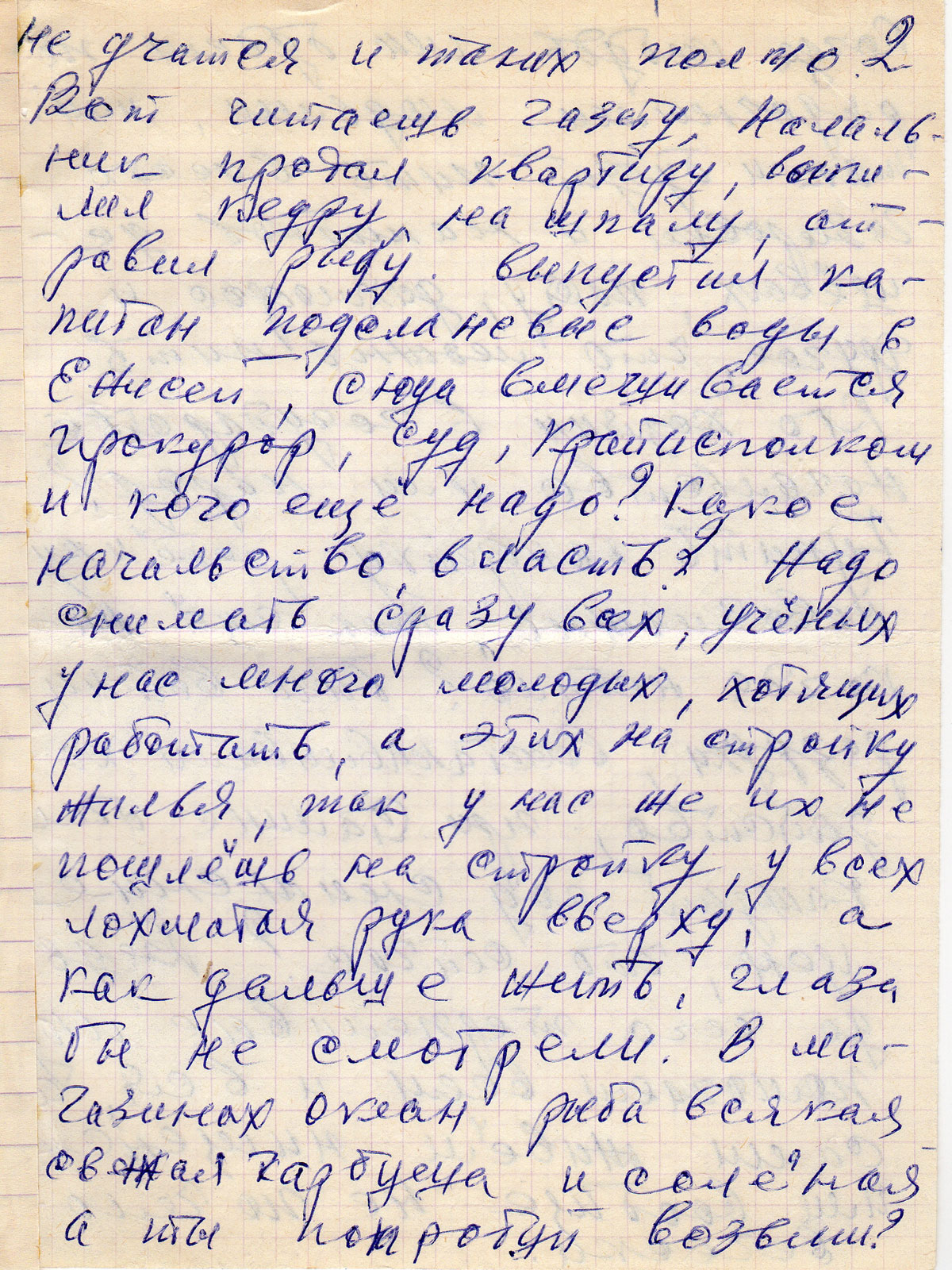 Почему всех под один горшок стригут. Неужели я доживший до пенсии, отработавший в 3 раза труднее и больше, не заработал в праздник фужер хорошего вина или водки или другого напитка. Почему стыдно смотреть на эти очереди и убийства в Крае, и Союзе за этим зельем. Неужели не люди мы по человечески посидеть за столом в ресторане или кафе. Много нам надо русские люди не спрашивают многого. Стыдно сказать что все кто понял не хотят работать. Закончил он институт и ставит рабочие дни в табеле по десятку лет (называется заменил табельщицу) а сам за это время не придумал ничего, чтобы заменить лапату. Так ты ничего не думаешь, иди через пять лет на стройку, строй жильё иди в рабочие. Так с ними надо поступать кто живет за счёт другого. Секретарей развели у директоров и ночальства по 2-3 а если бы их на щекотурку или в моляры. Надо сократить администрацию на 50% производство выйграет, но не потеряет. Некоторые дипломы покупают, но не учатся и таких полно. Вот читаешь газету, начальник продал квартиру, выпилил кедру на шпалу, отравил рыбу. Выпустил капитан подсланевые воды в Енисей, сюда вмешивается прокурор, суд, крайисполком и кого еще надо? Какое начальство, власть? Надо снимать сразу всех, учёных у нас много молодых, хотящих работать, а этих на стройку жилья, так у нас же их не пошлешь на стройку, у всех лохматая рука вверху, а как дальше жить, глаза бы не смотрели. В магазинах океан рыба всякая свежая карбуша и солёная а ты попробуй возьми?