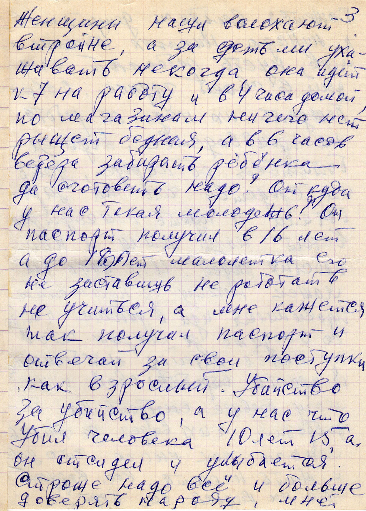 Женщины наши волохают втройне, а за детьми ухаживать некогда, она идёт к 7 на