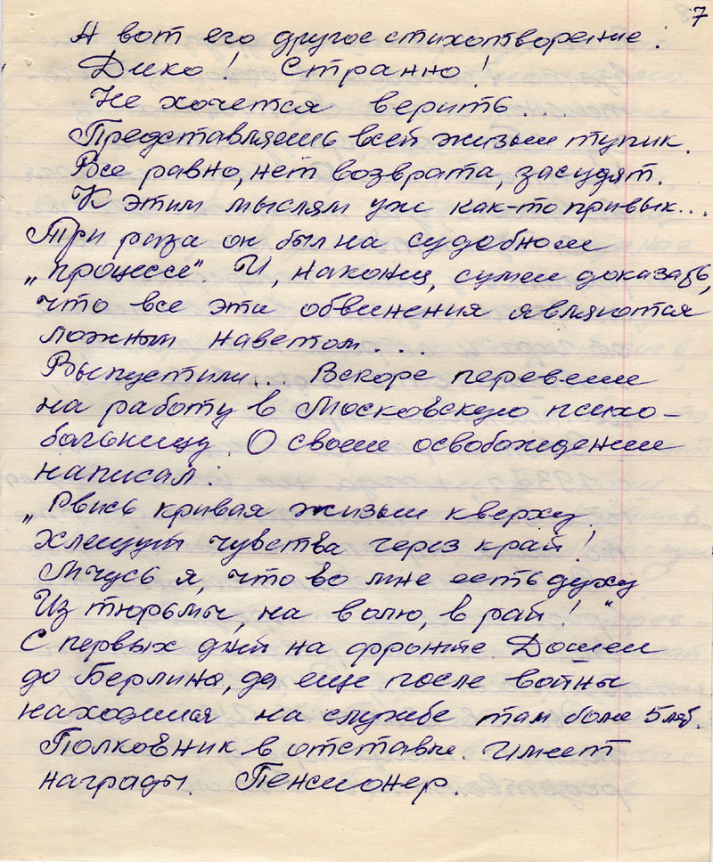 Выпустили... Вскоре перевели на работу в Московскую психобольницу. О своем освобождении написал