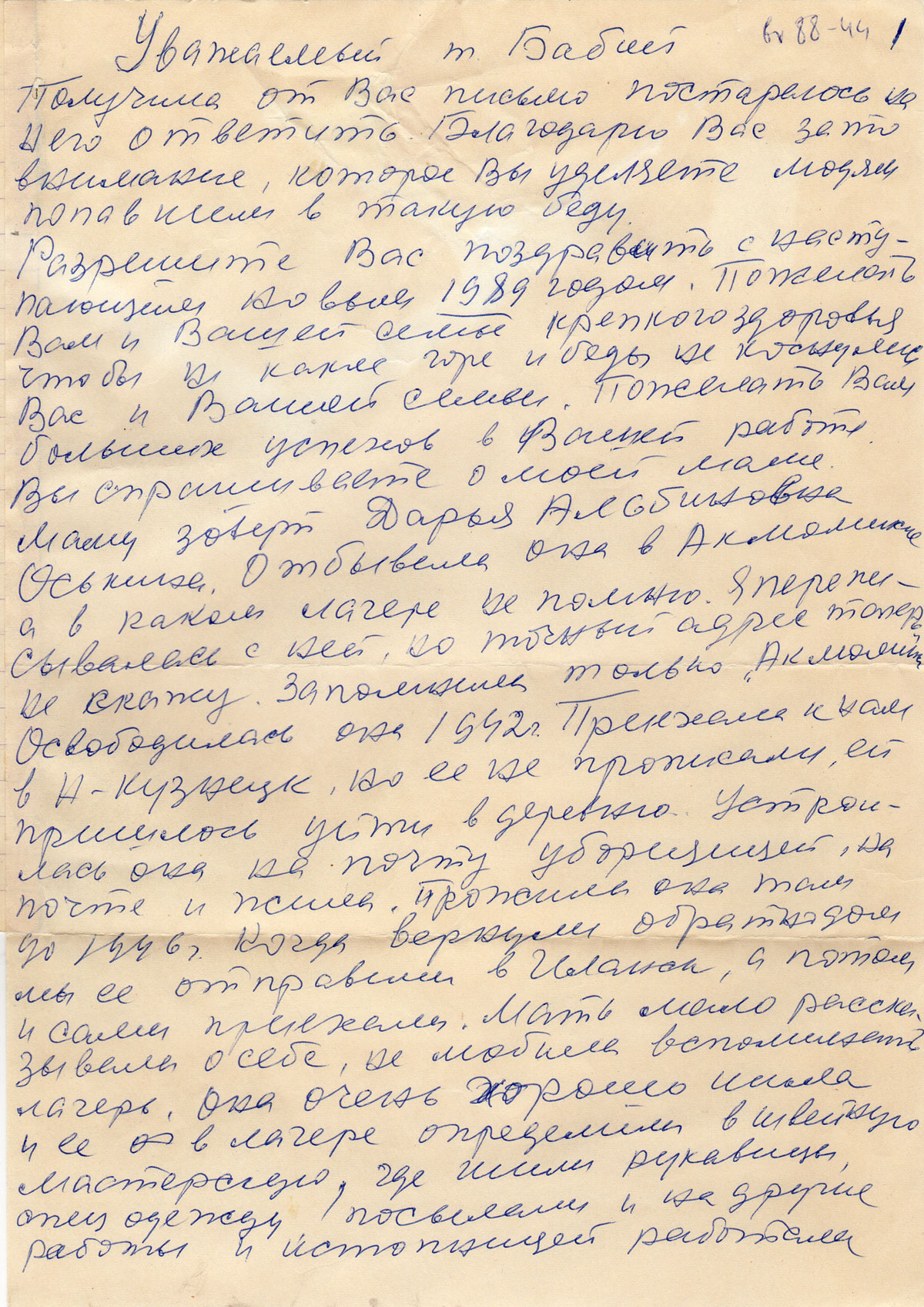Маму зовут Дарья Альбиновна Оськина. Отбывала она в Акмолинске а в каком лагере