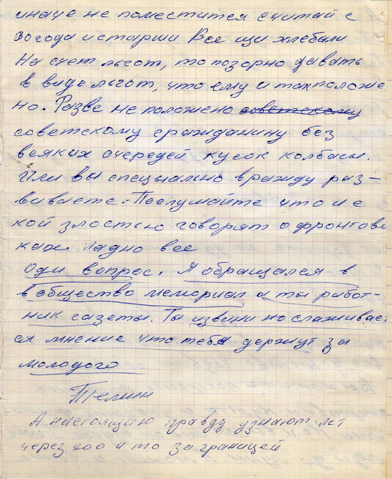Оди вопрос. Я обращался в общество мемориал а ты работник газеты. Ты извини но слаживается мнение что тебя держут за молодого