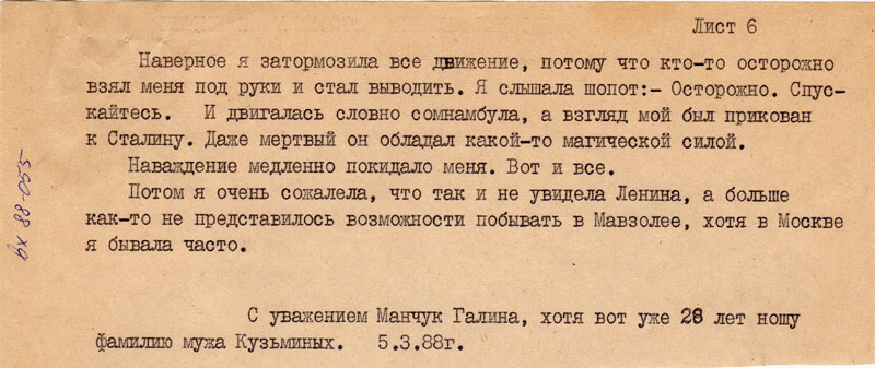 С уважением Манчук Галина, хотя вот уже 28 лет ношу фамилию мужа Кузьминых. 5.3.88 г.