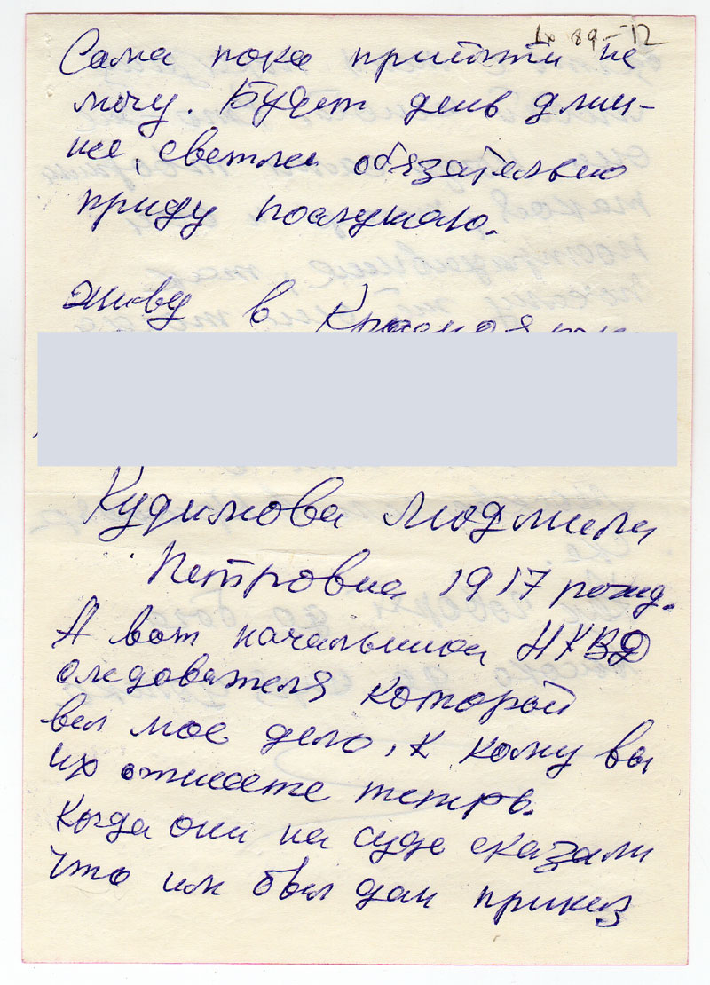 Кудимова Людмила Петровна, 1917 г. рожд.