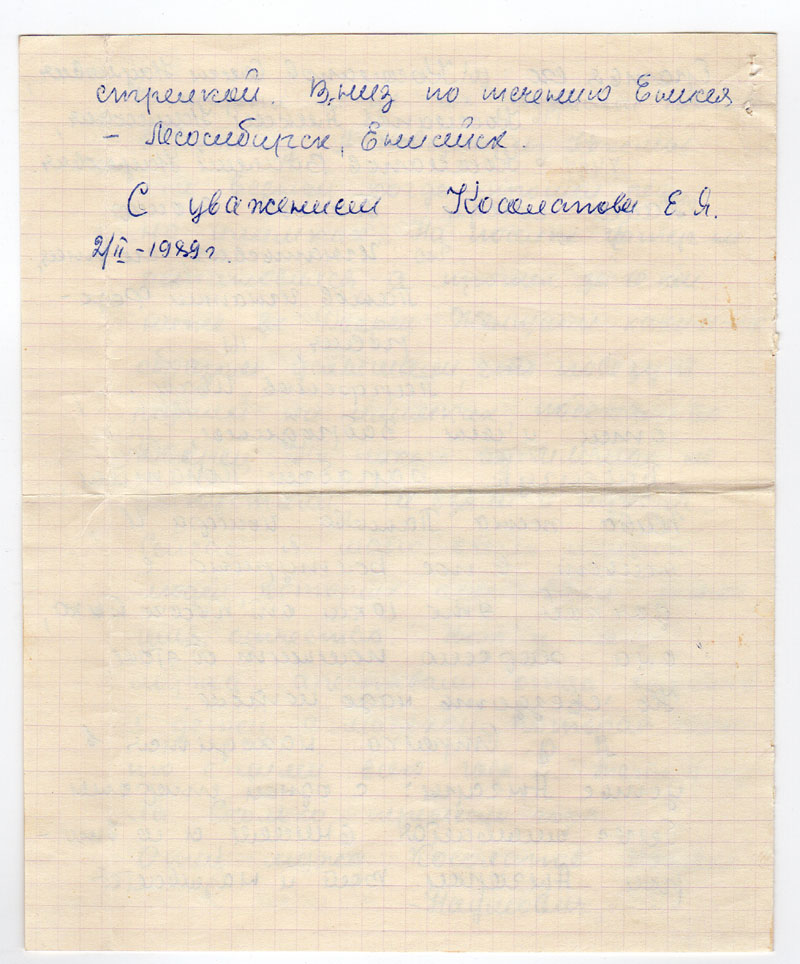 С уважением Косолапова Е.Я. 2/II-1989 г.