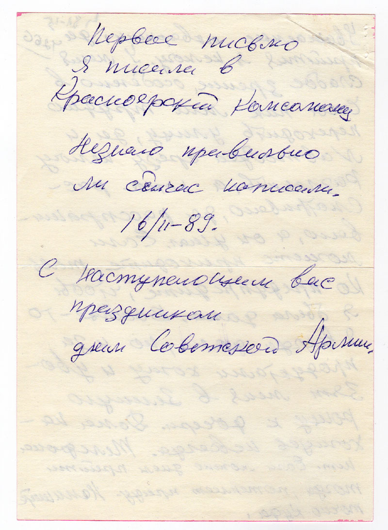 Первое письмо я писала в Красноярский Комсомолец.