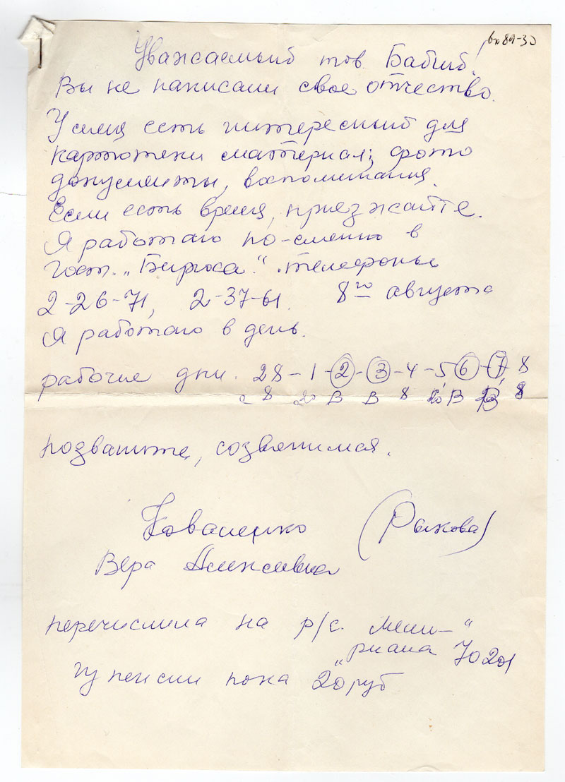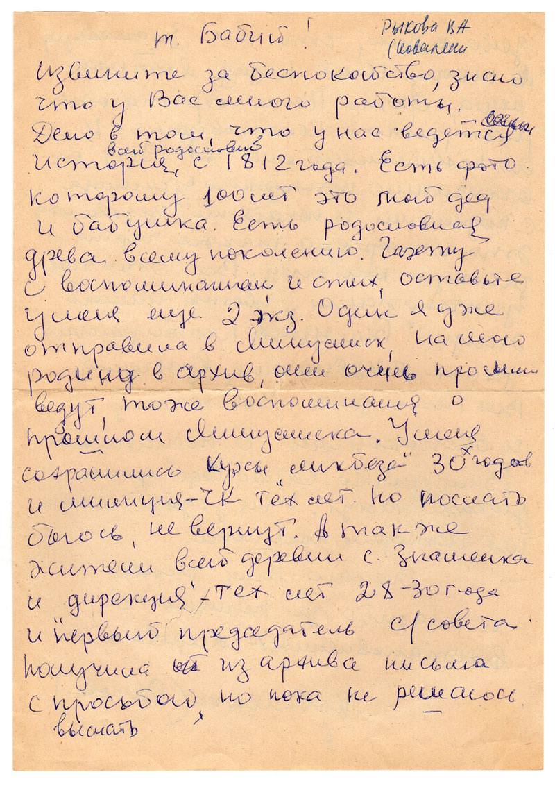 получила из архива письма с просьбой, но пока не решаюсь выслать дело в том, что
