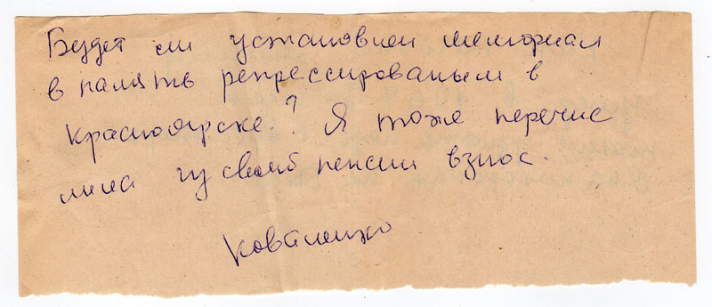 Будет ли установлен мемориал в память репрессированым в Красноярске? Я тоже