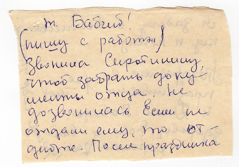Звонила Сиротинину, чтоб забрать документы отца. Не дозвонилась. Если не отдали